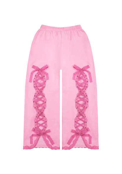 BAD ROMANCE LACE RIBBON OVERSIZED SWEATPANTS BABY PINK
