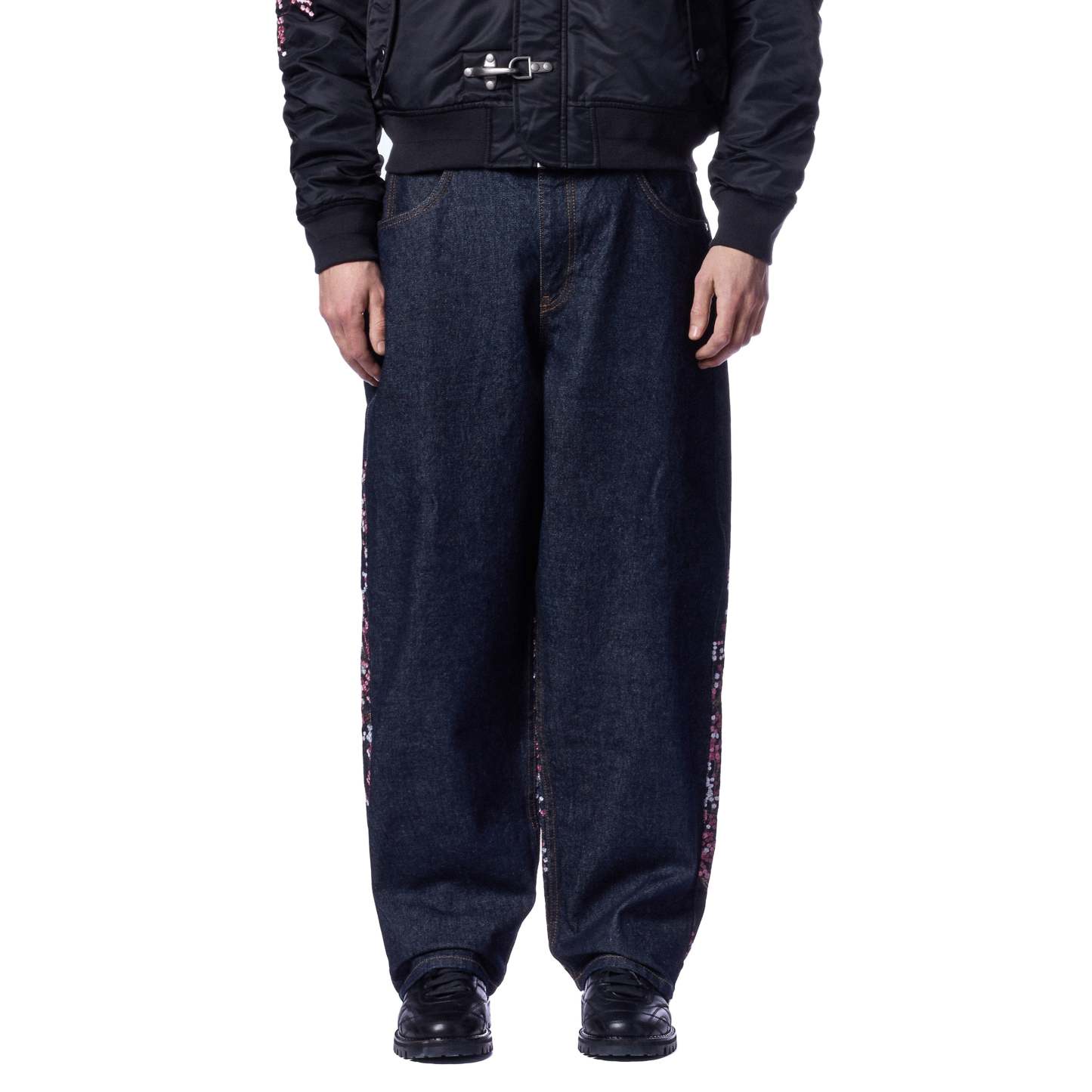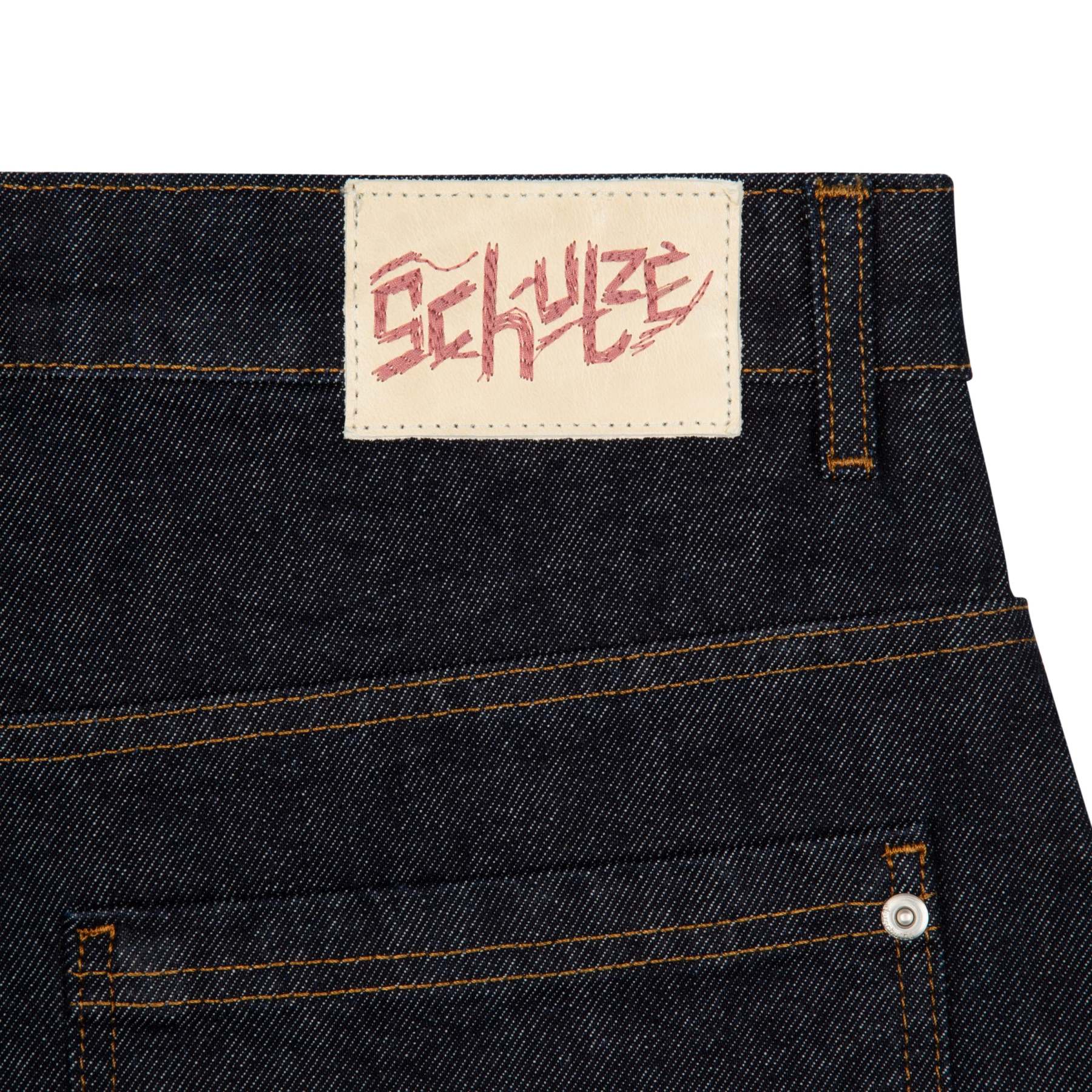 14,5oz denim / 100% cotton / embroidery on front and back / embroidered leather patch / wash inside out / straight fit / fits true to size