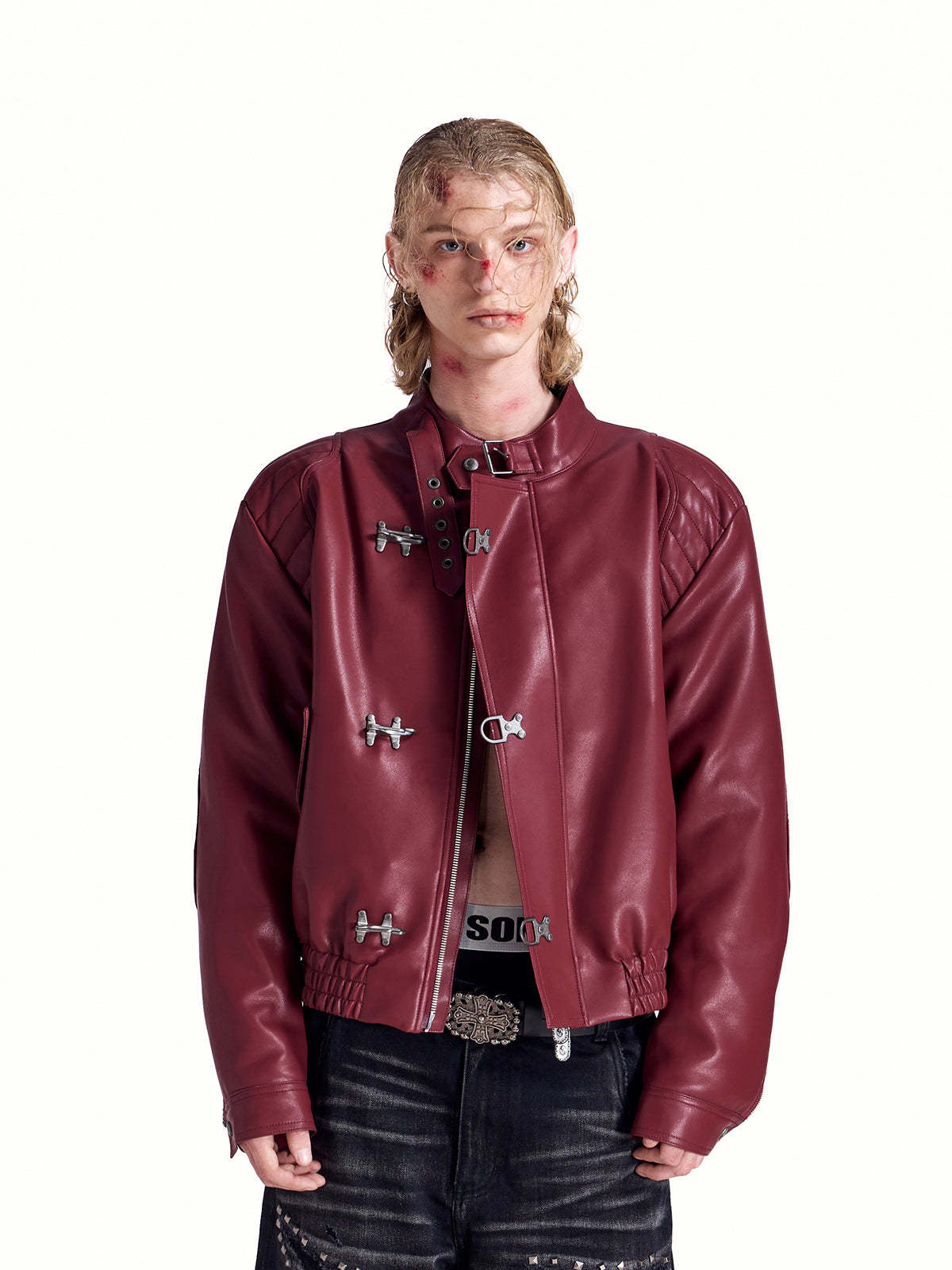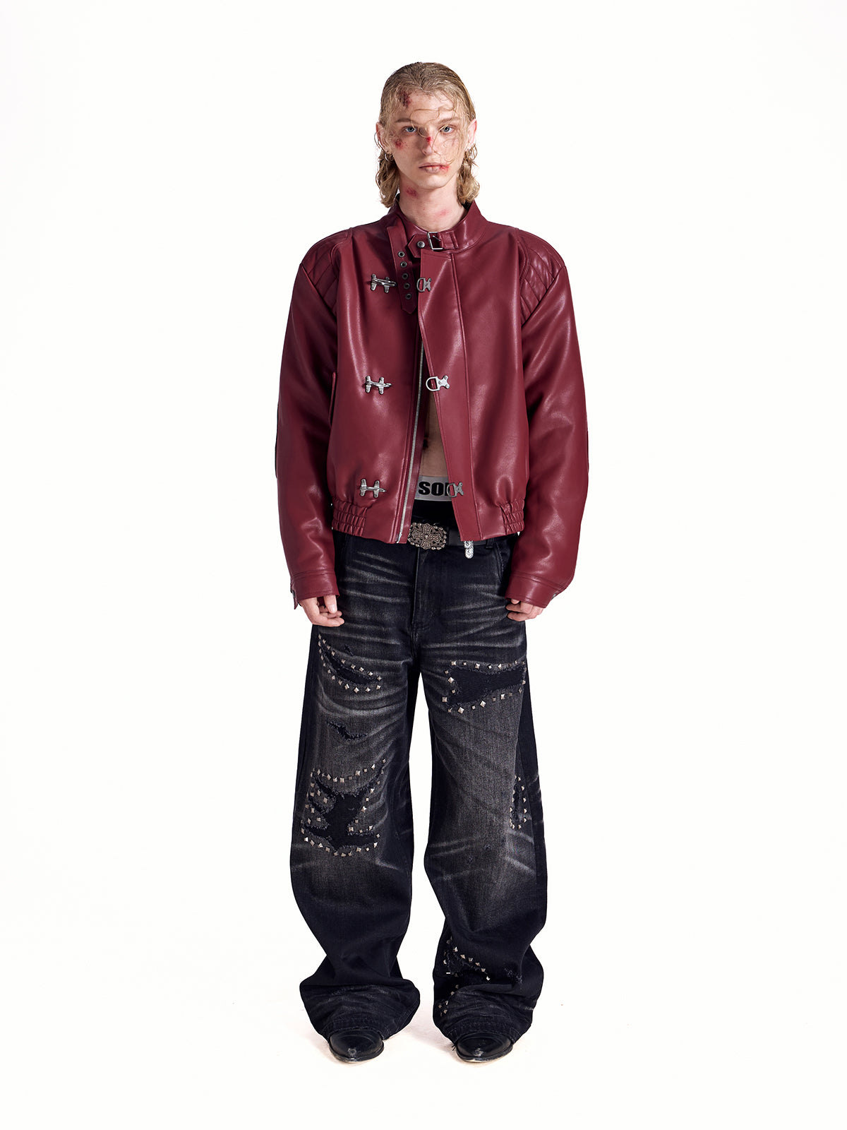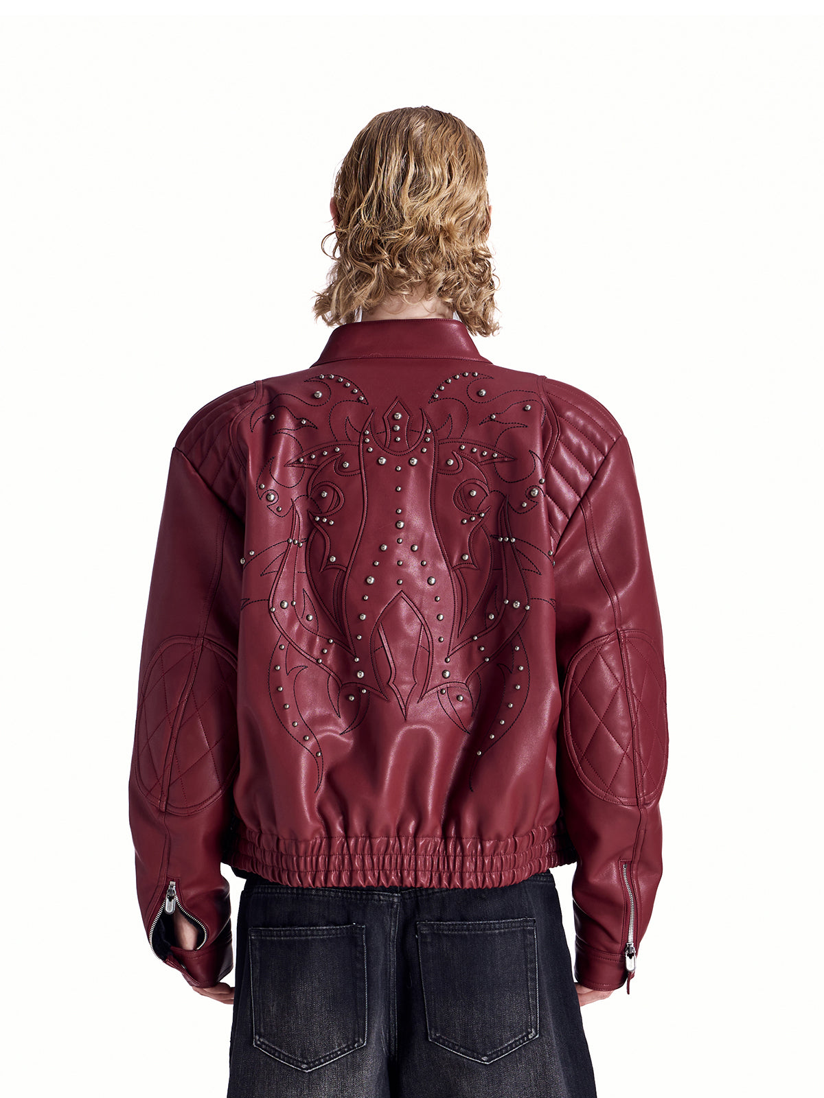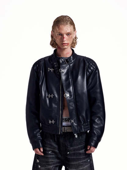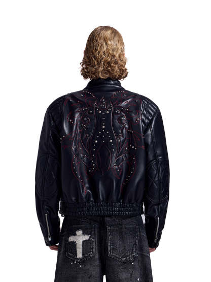 HAS2SONS locomotive rivet embroidered leather jacket