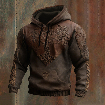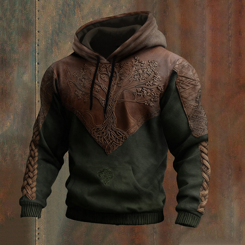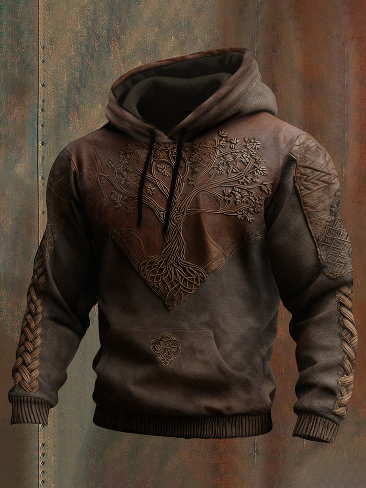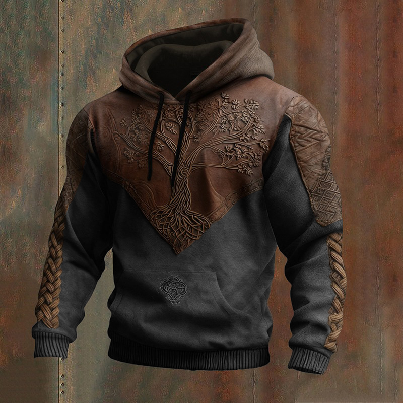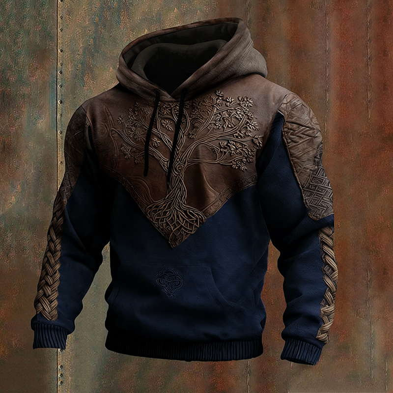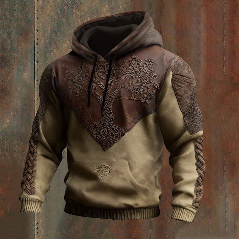 Men's Vintage Viking Tree Of Life Patchwork Casual Hoodie