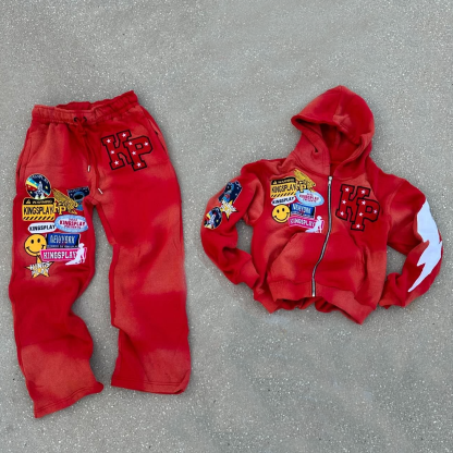 Personalized Street Style Applique Zip-Up Hoodie Set