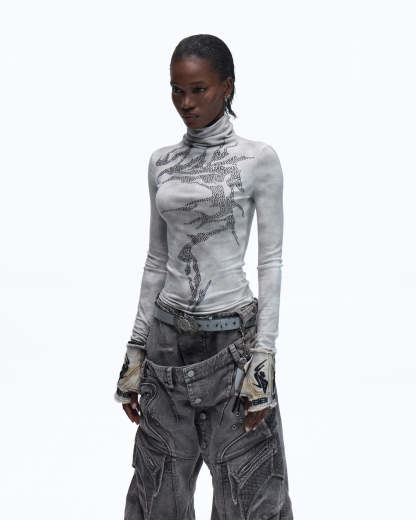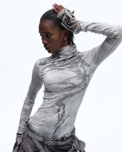 Personsoul Metallic Crystal-Lightning Long Sleeve Tee