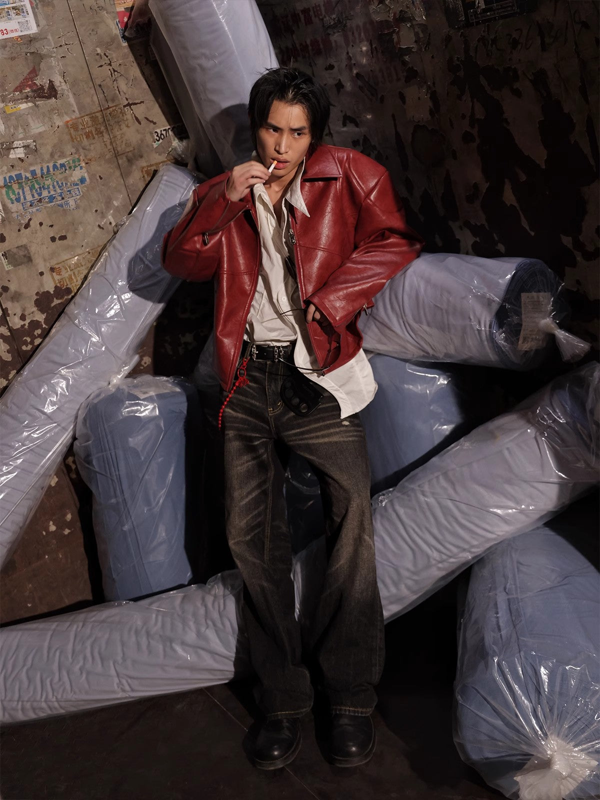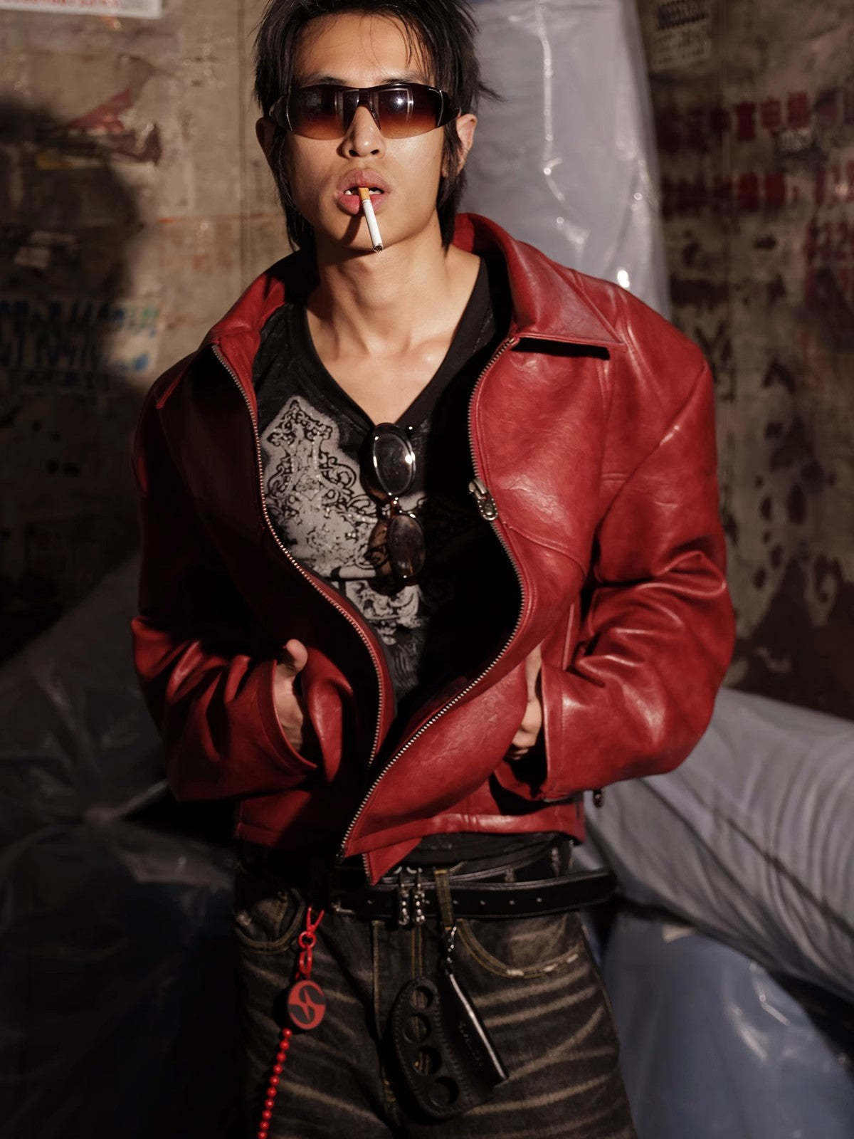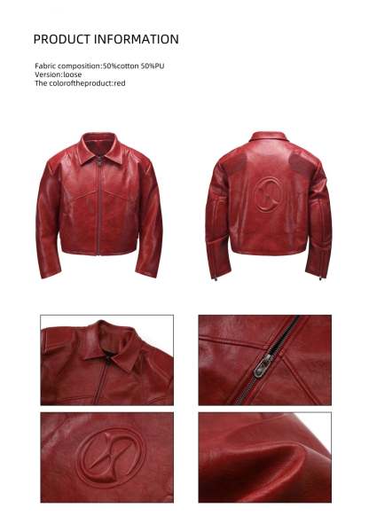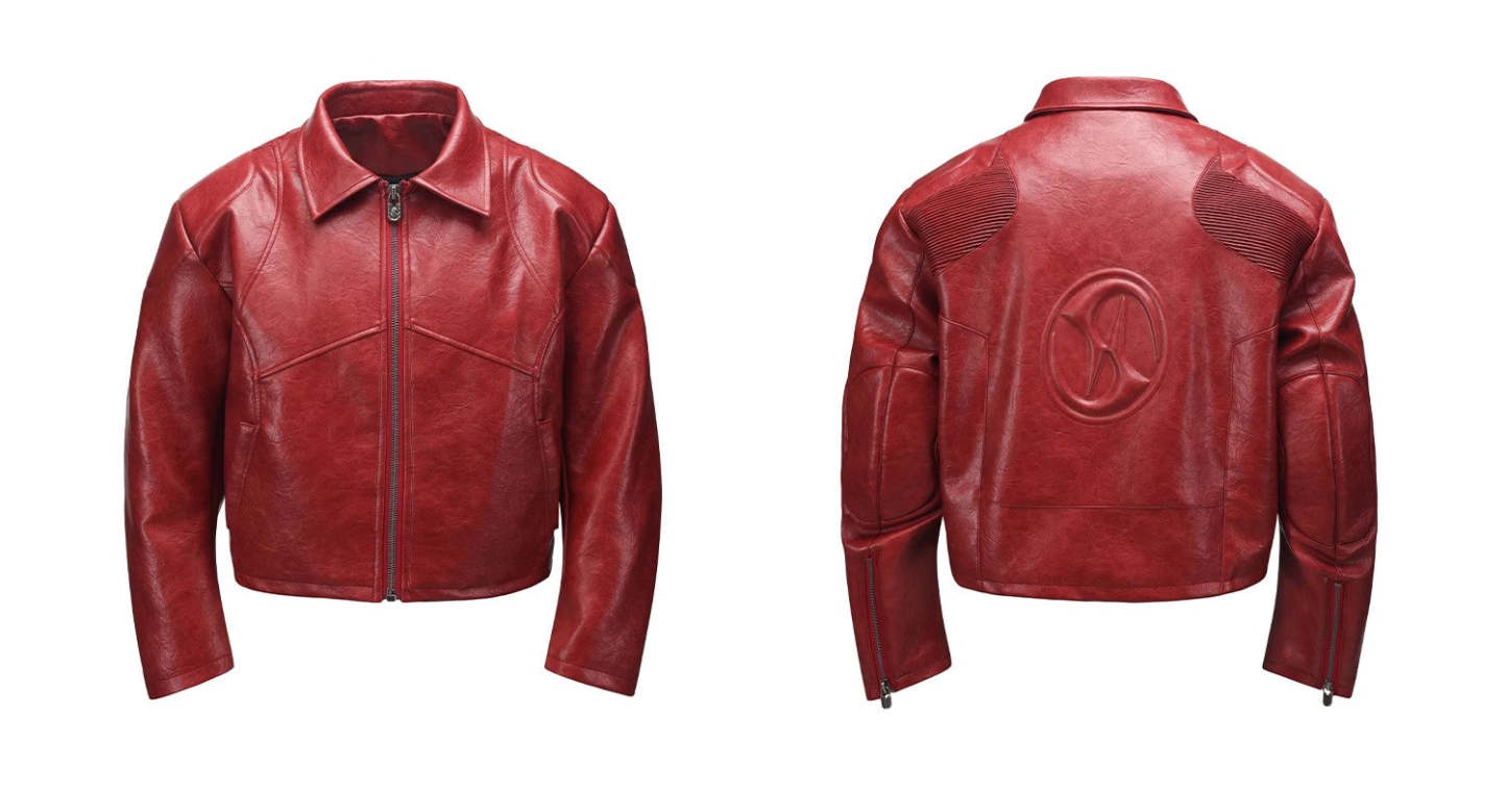 HAS2SONS red curved blade sleeve PU leather jacket