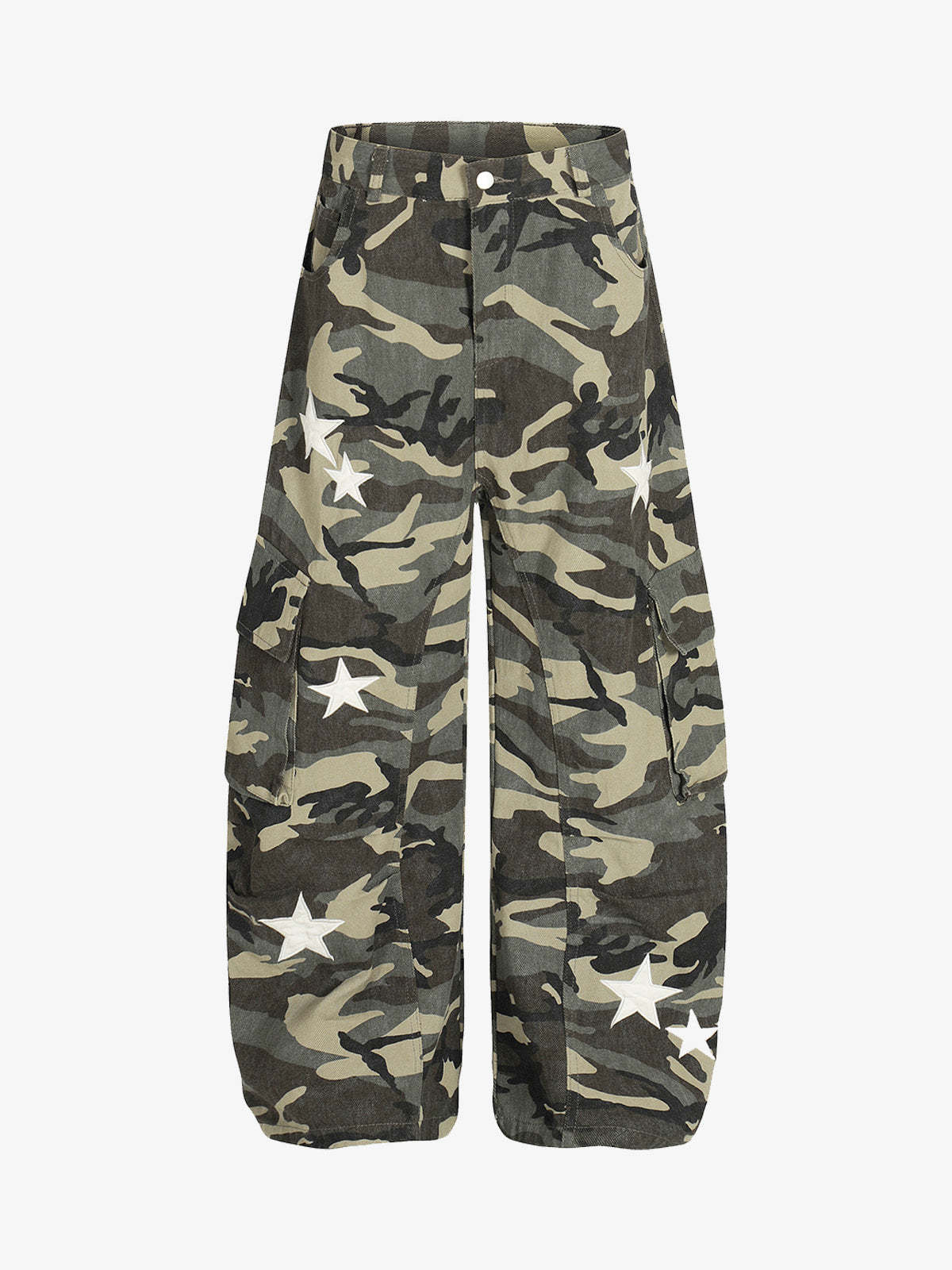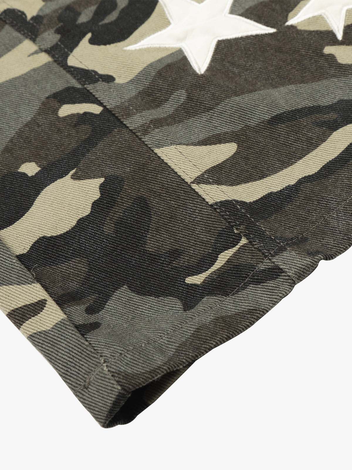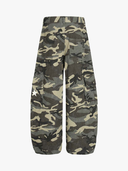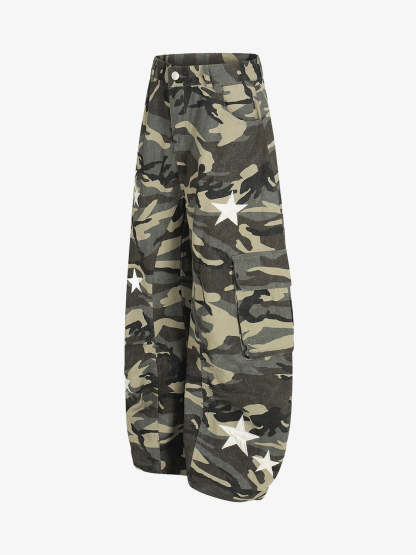 • Design Elements: Camouflage pattern, white star accents, cargo pockets