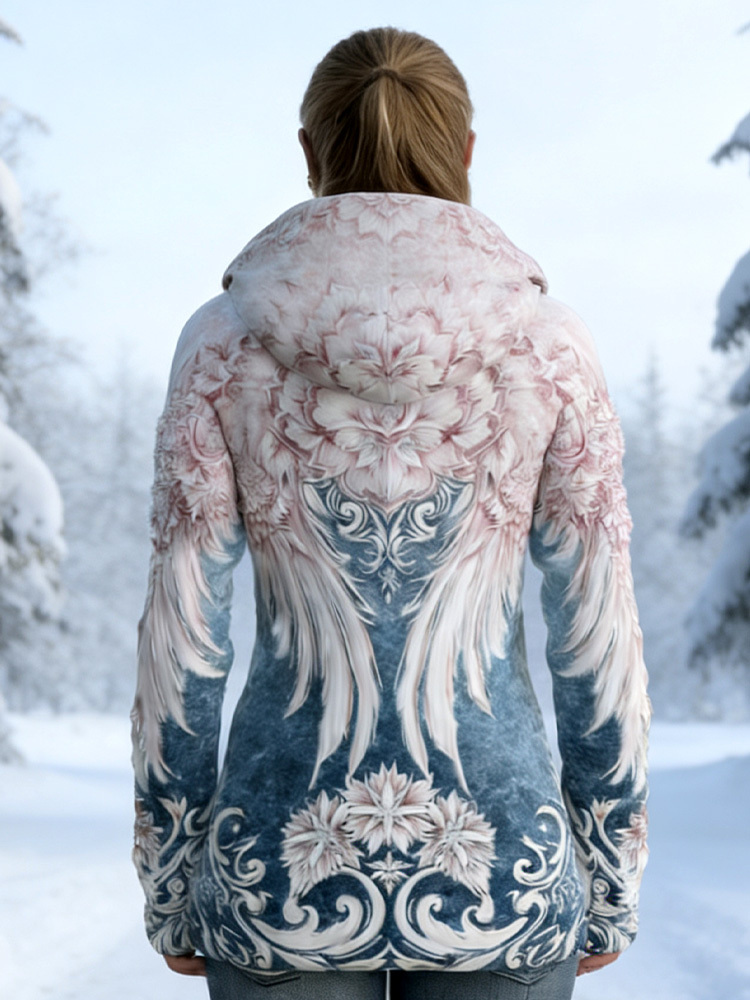 Women's Vintage Viking Wings Print Hoodie