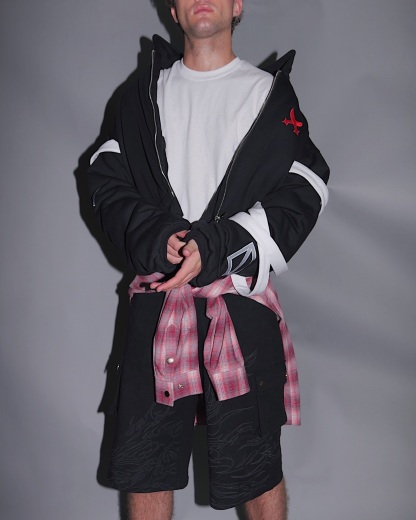 Step into the streets with the Zoro Bomber Jacket — a fusion of anime energy and tactical streetwear. Cropped cut, ribboned sleeves, bold back lettering — built for those who move different.
