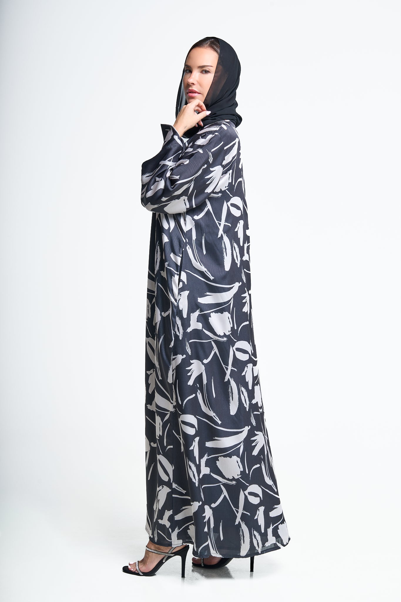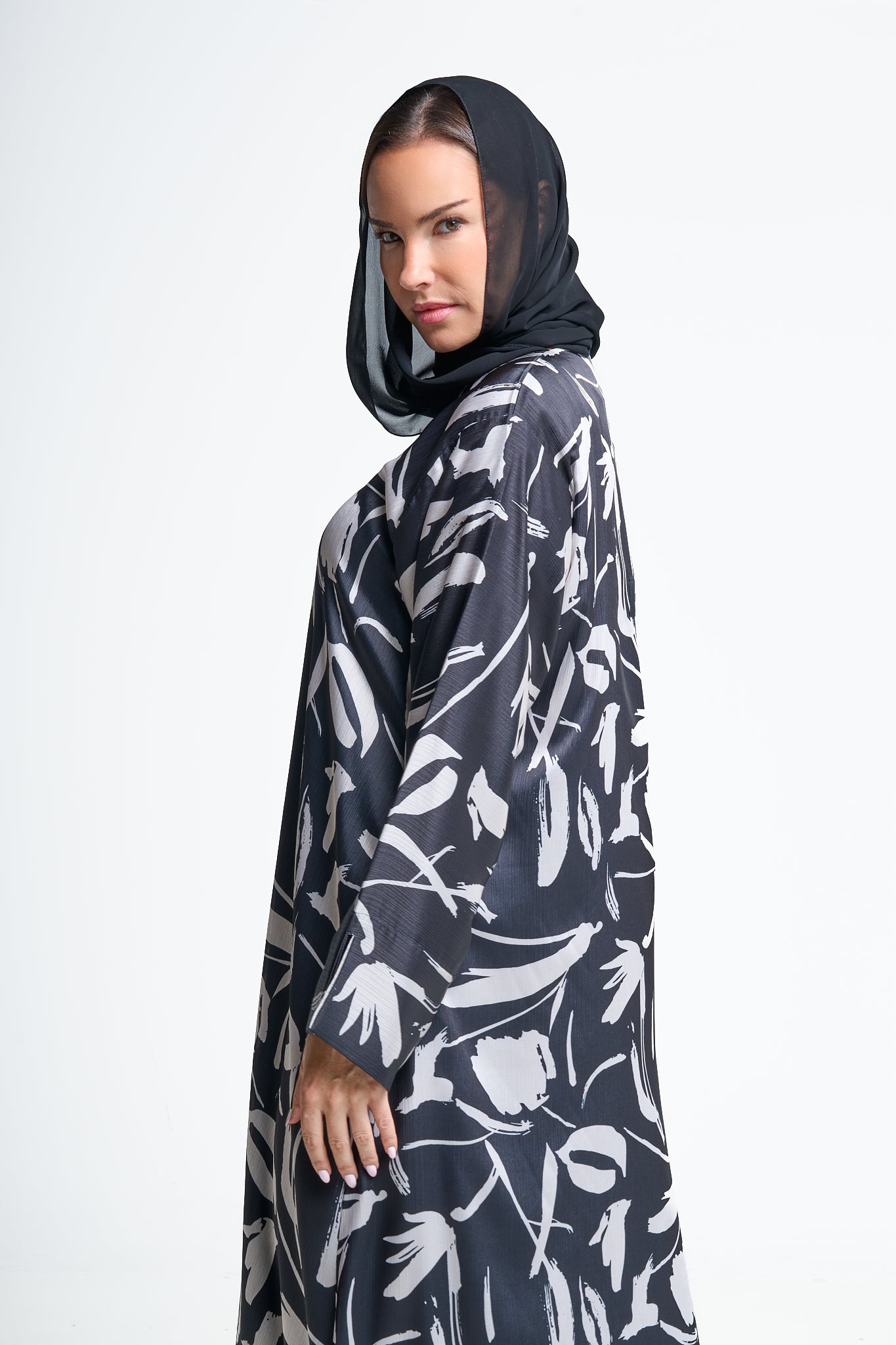 Elevate your modest wardrobe with this flowing abaya featuring a bold abstract print. Designed with wide sleeves and a relaxed silhouette, it offers both comfort and elegance for everyday wear or special occasions. The lightweight fabric drapes beautifully, while the artistic brushstroke pattern adds a modern, fashion-forward touch. Pair it effortlessly with neutral accessories or a statement scarf for a complete, refined look.