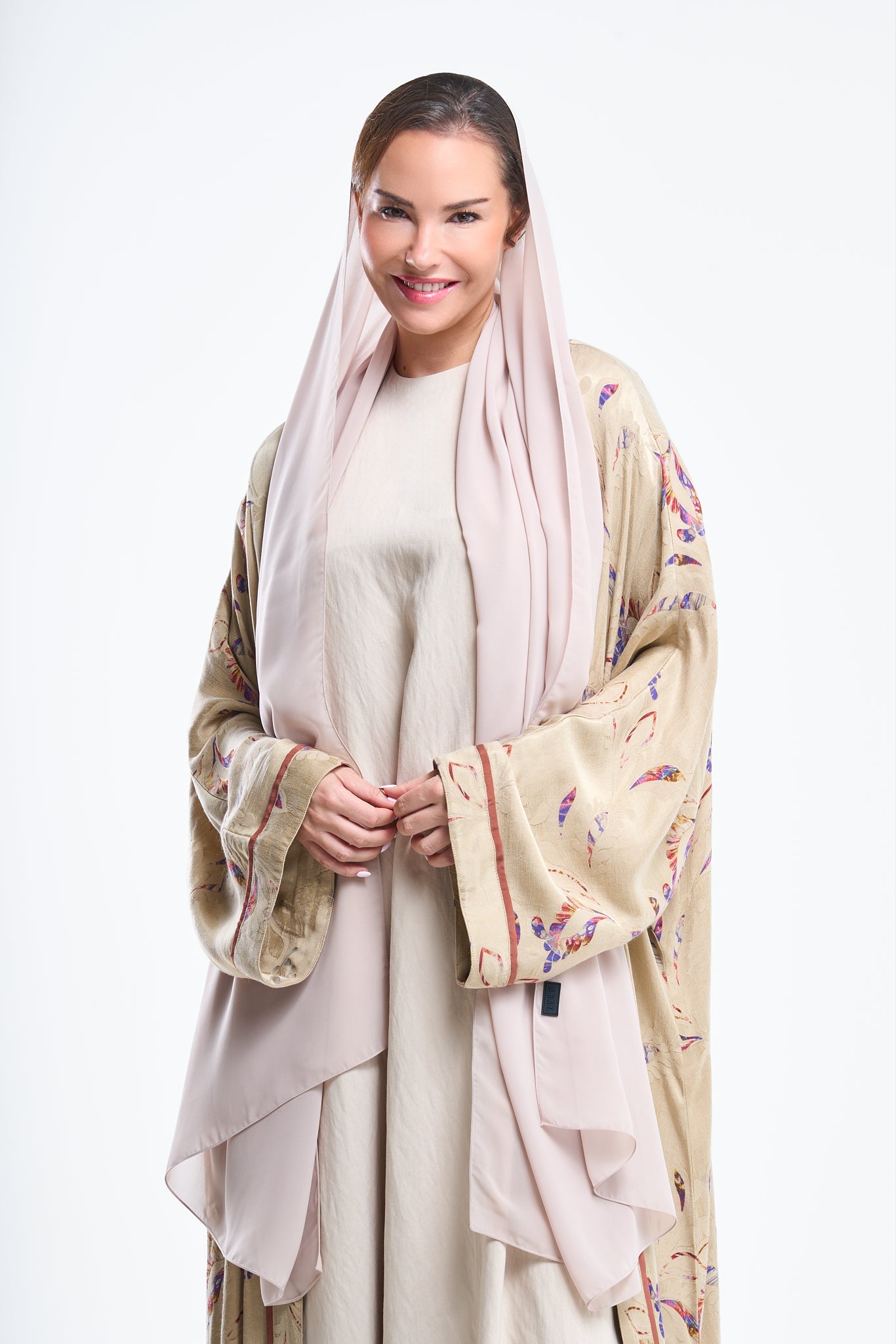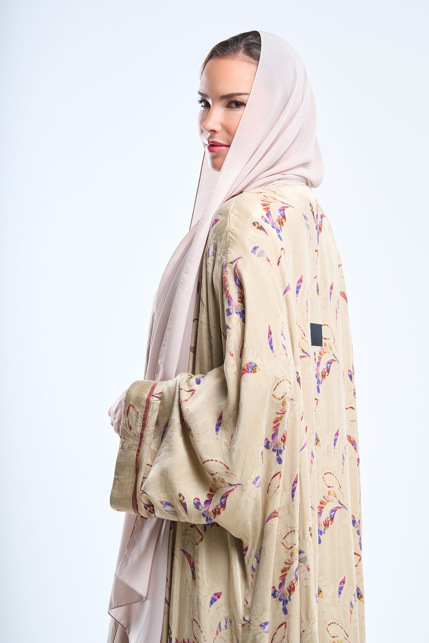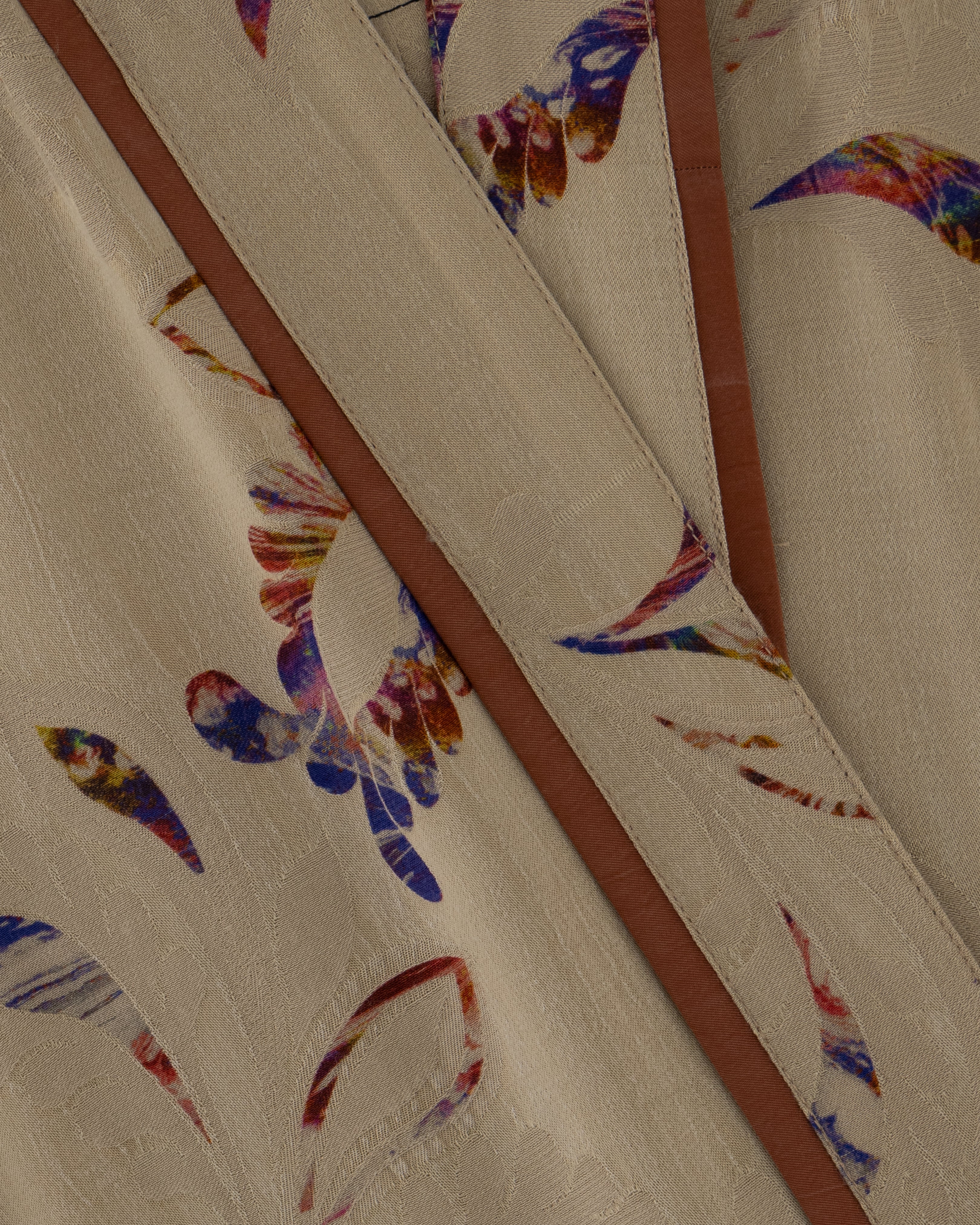 Designed for subtlety, this black-on-black jacquard piece offers camellia silhouettes that come alive under direct light.