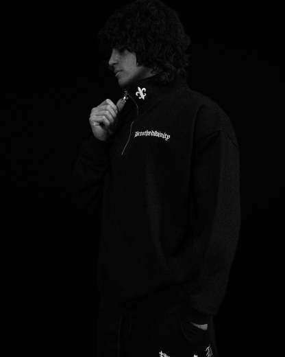 Elegant Quarter zip Crew neck [VOID BLACK]