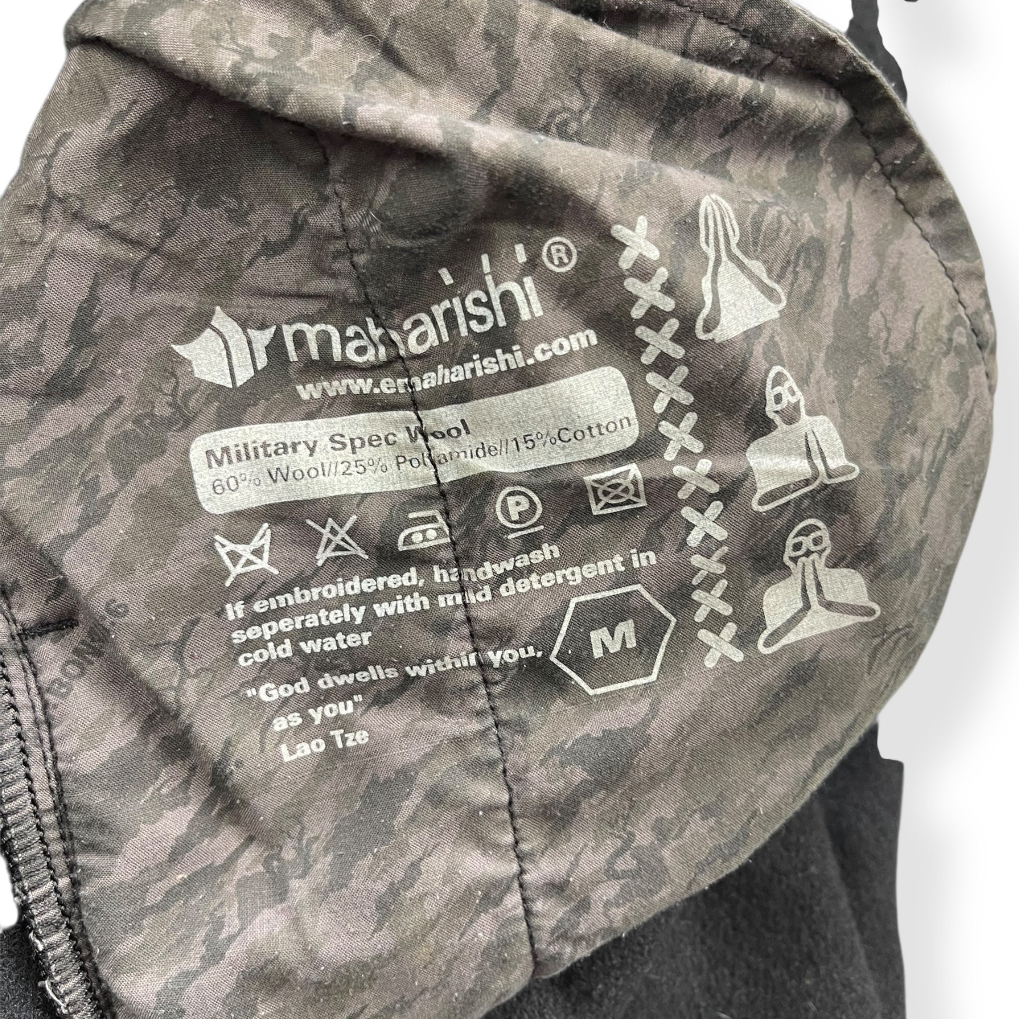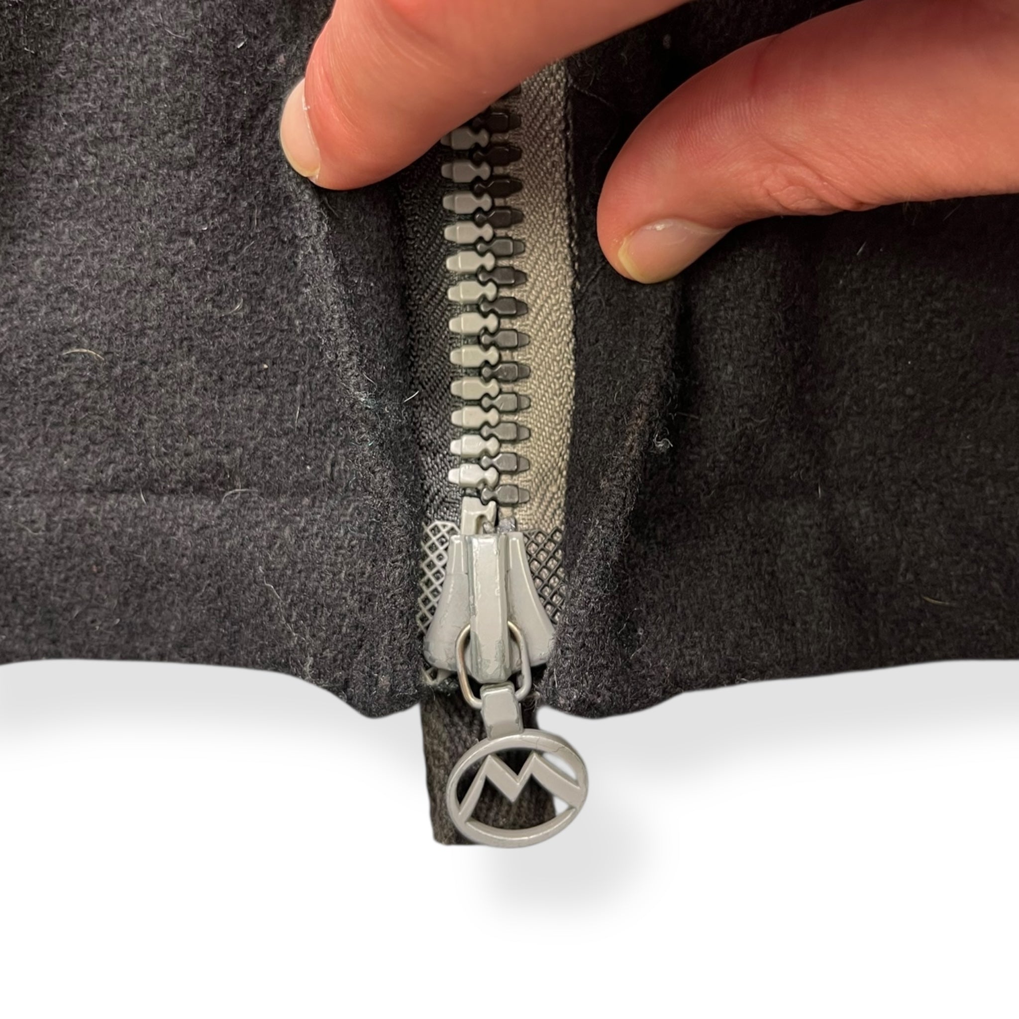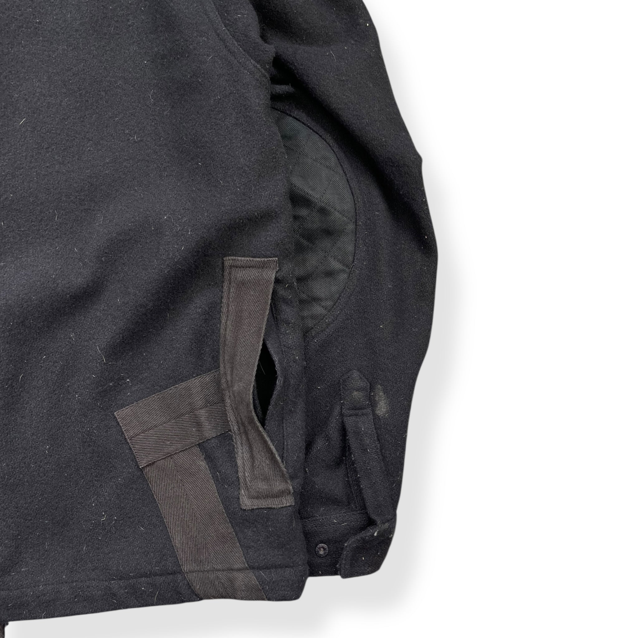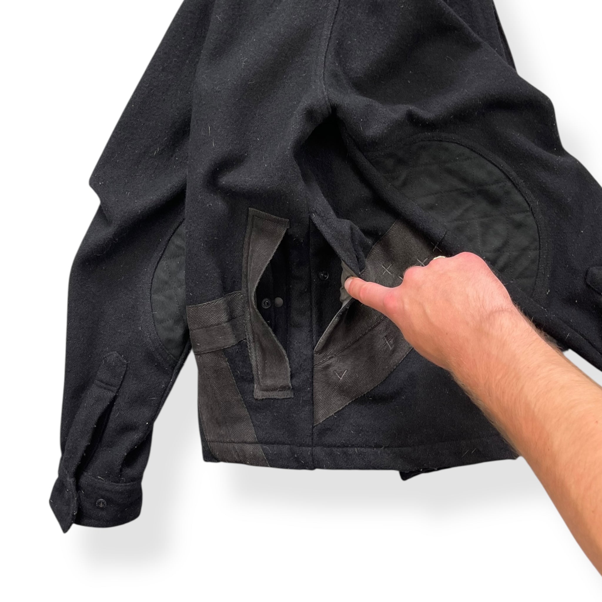 Super durable wool construction, with a thick cotton cross on the front, back pocket detailing & inner elbow patches. Signature two-tone zipper teeth (grey/black), two-way zipper & branded zip pull. Stash pocket on the chest closed by a popper & concealed behind the pattern across the chest.