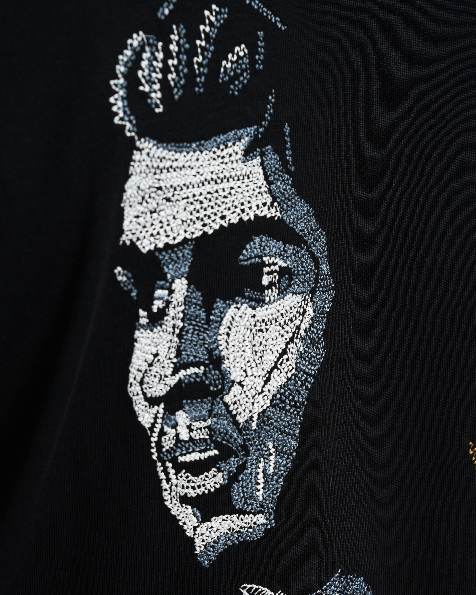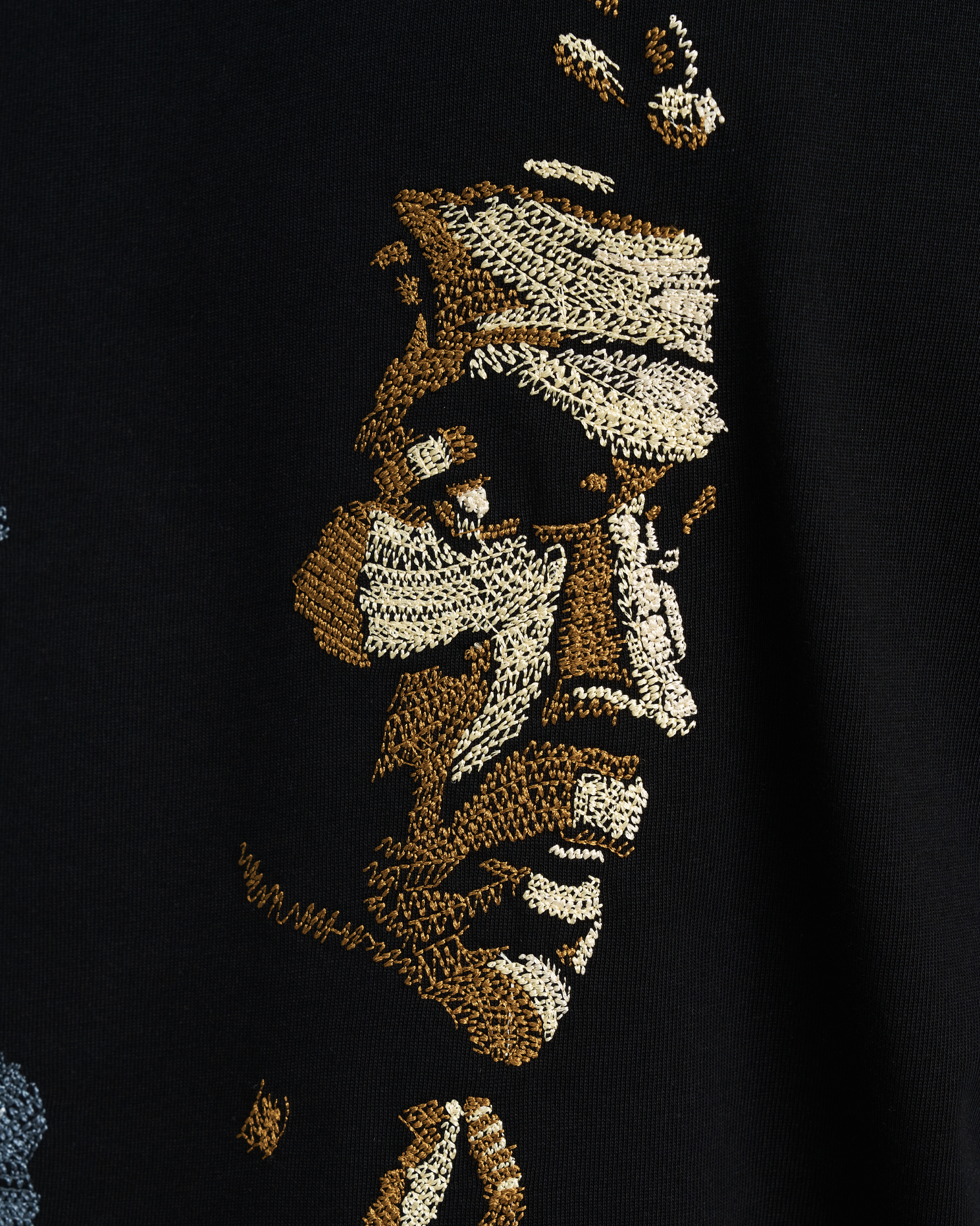 • 200,000+ metallic silver and gold stitches.