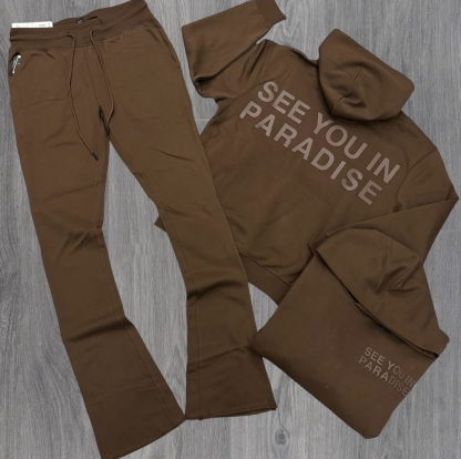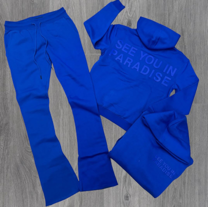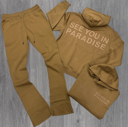 Casual solid color letter print hoodie set