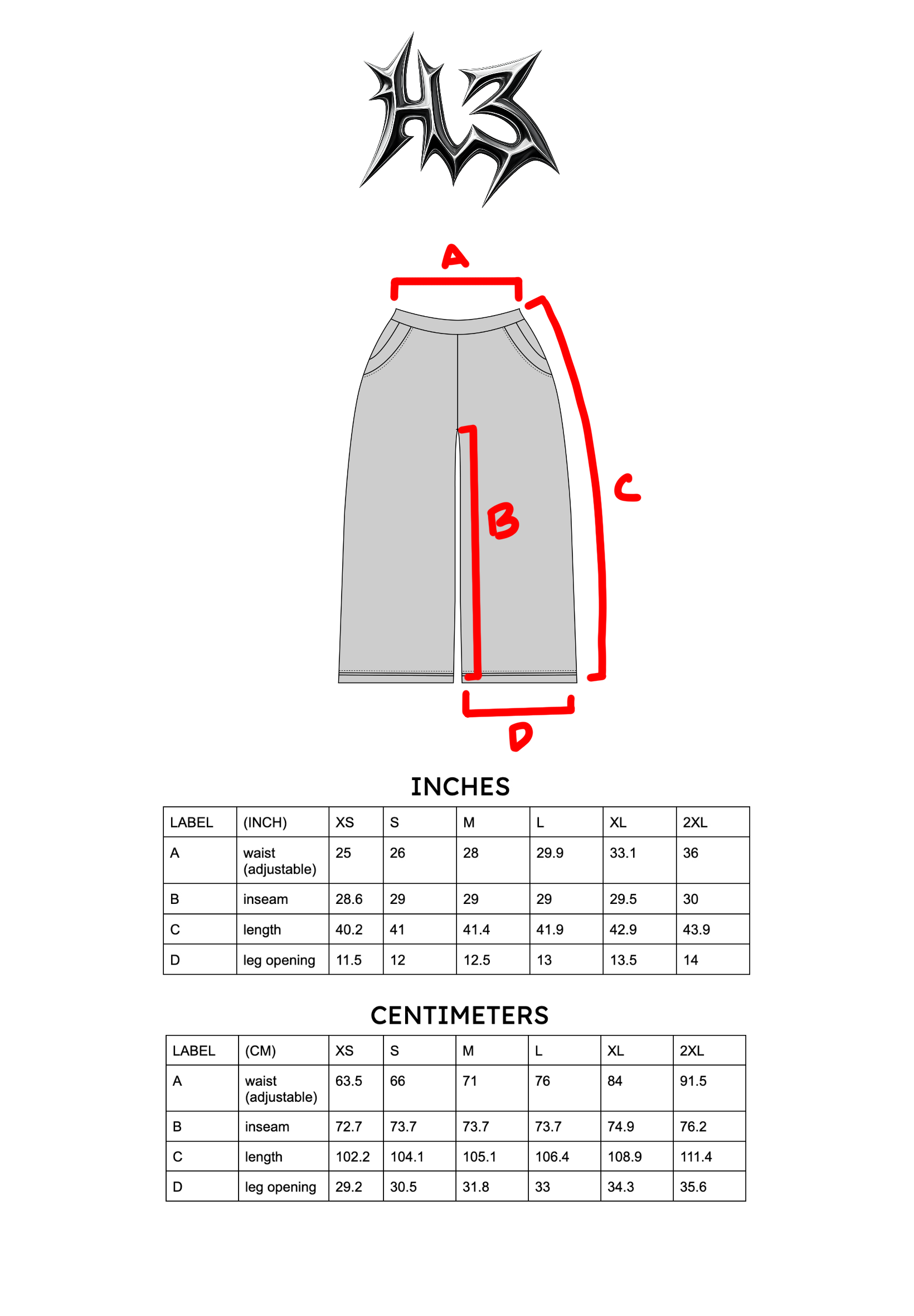 - Wide-legged, baggy fit