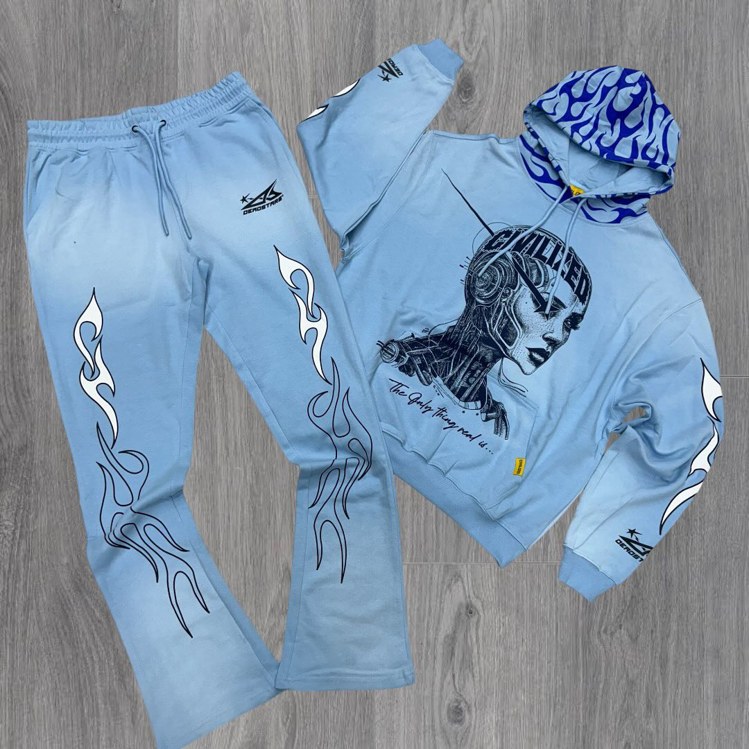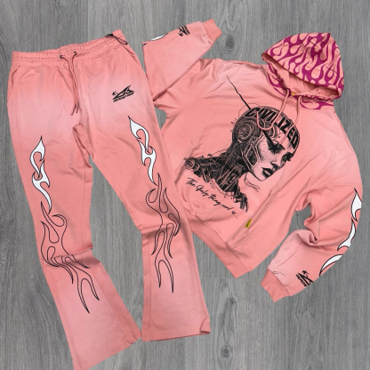 Flame Print Hoodie Two-Piece Set