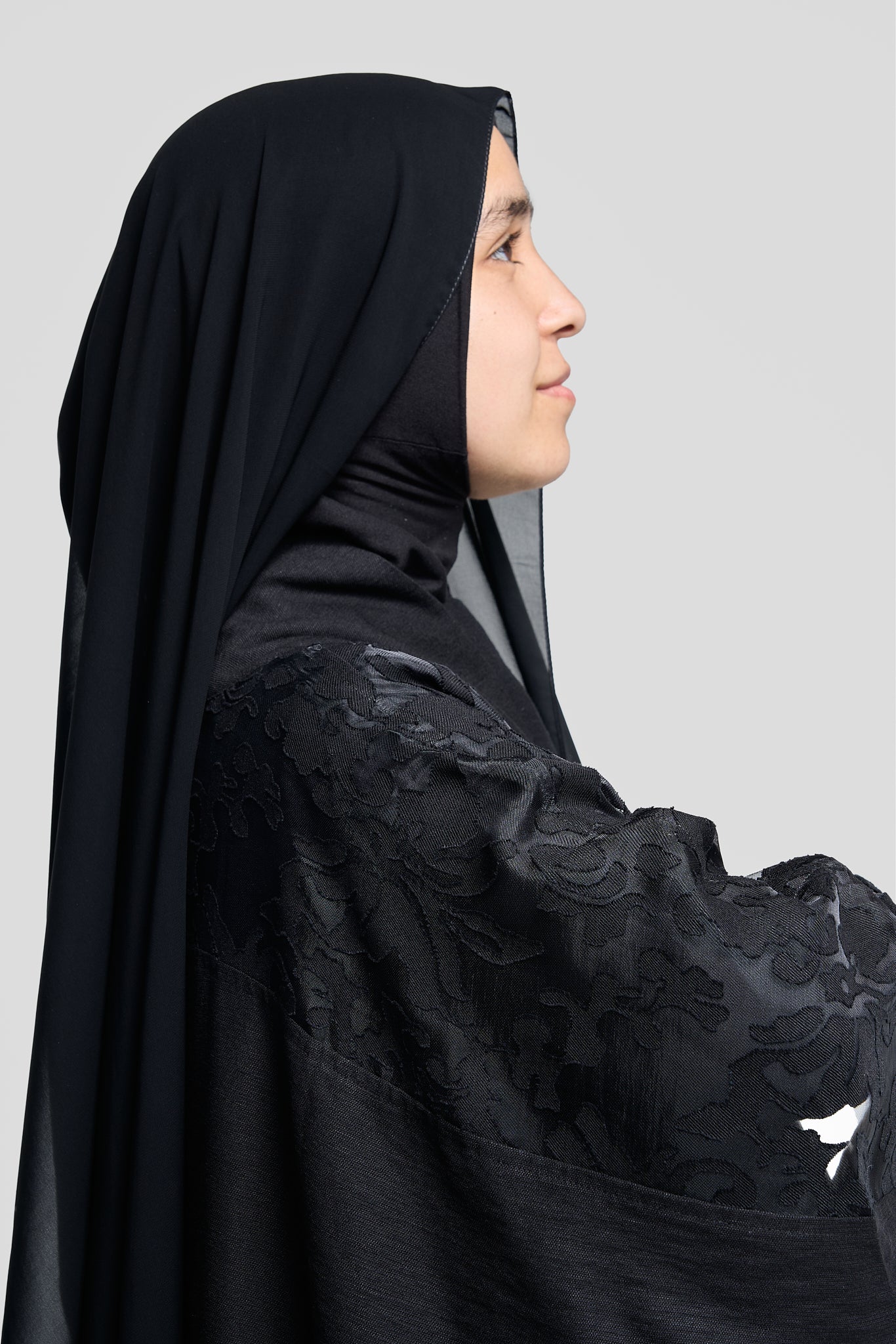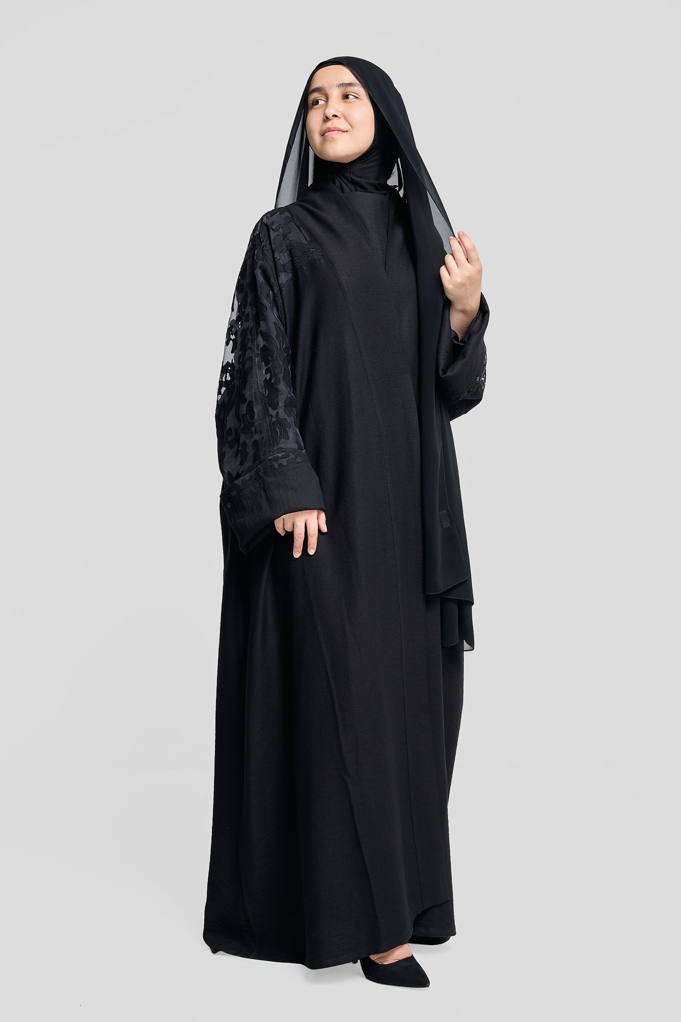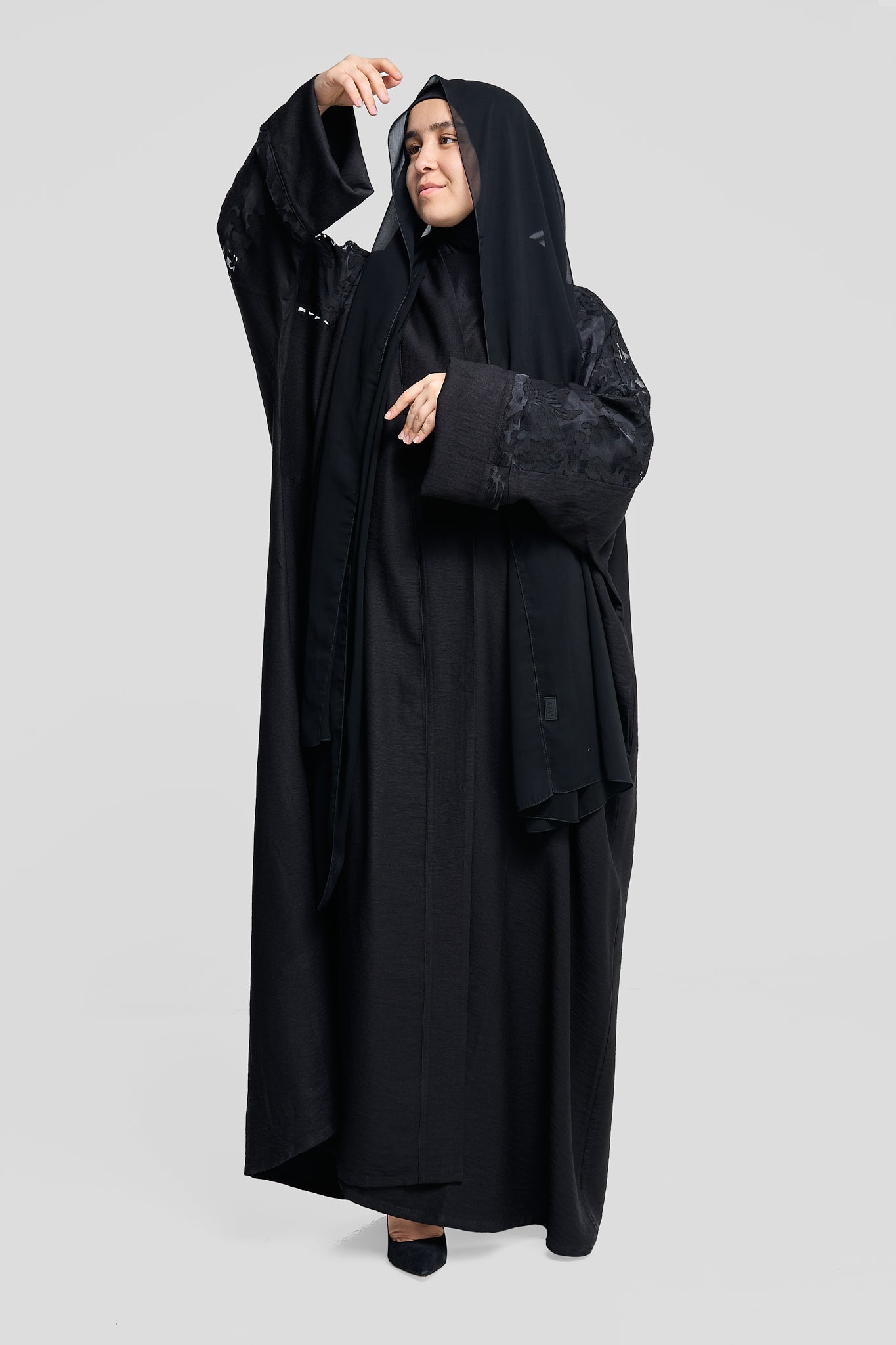 Black with Textured Floral Sleeve Detailing