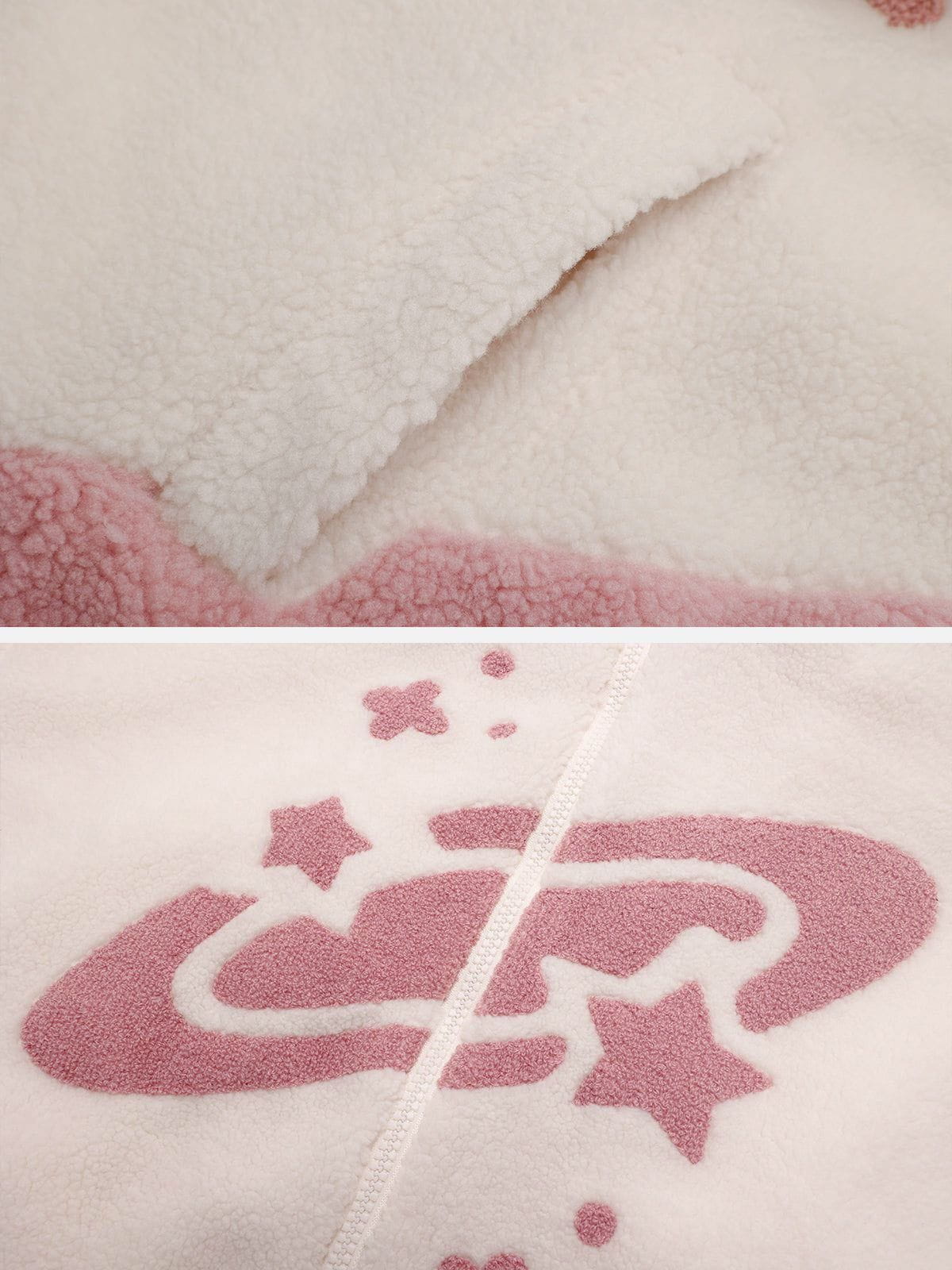 Stay warm and on trend with this cozy Aelfric Eden Star Graphic Sherpa Coat! It has a sherpa design with a beautiful star sky pattern to make you sparkle in the sky. Get ready for any adventure with this stylish and comfortable coat!