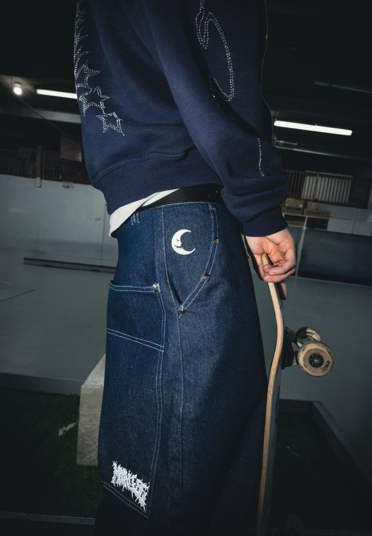Studs on pocket, bottom of jeans and back pockets