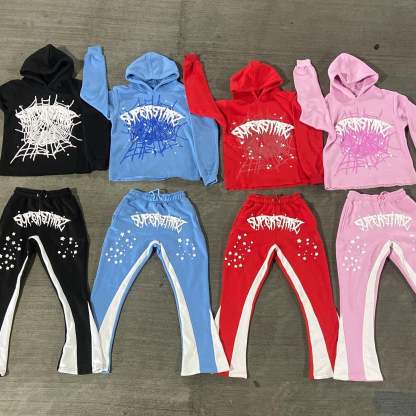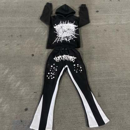 Alphabet Spider Web Print Hoodie Sweatpants Two Piece Set