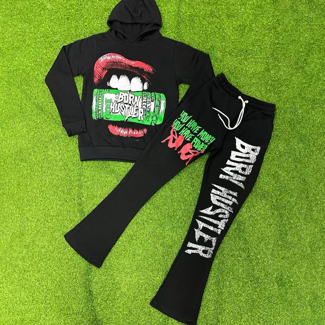 Born Hustler Print Two Piece Hoodie Set