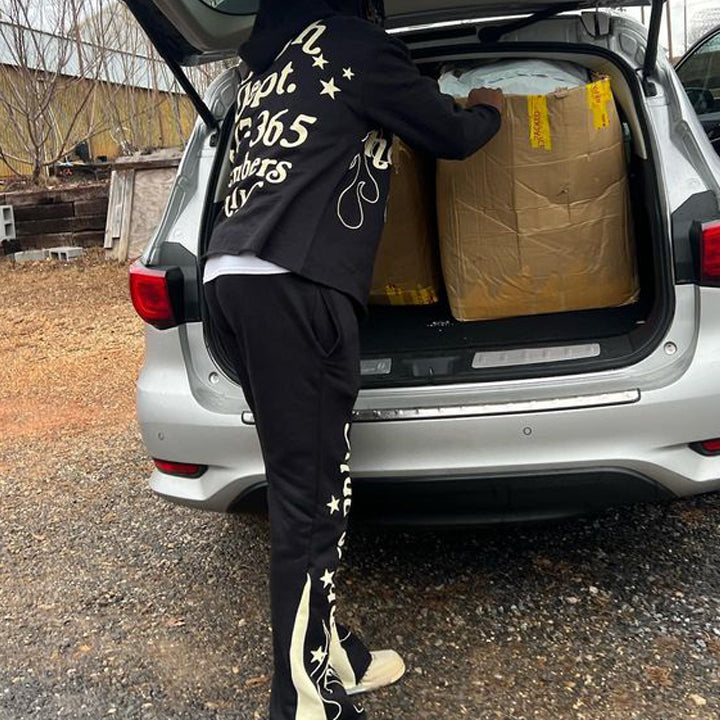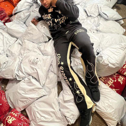 Casual Street Panel Sweatpants Hoodie Two-Piece Set