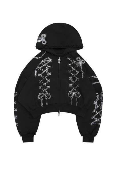 CONFESSIONS RHINESTONE CROP ZIP HOODIE BLACK