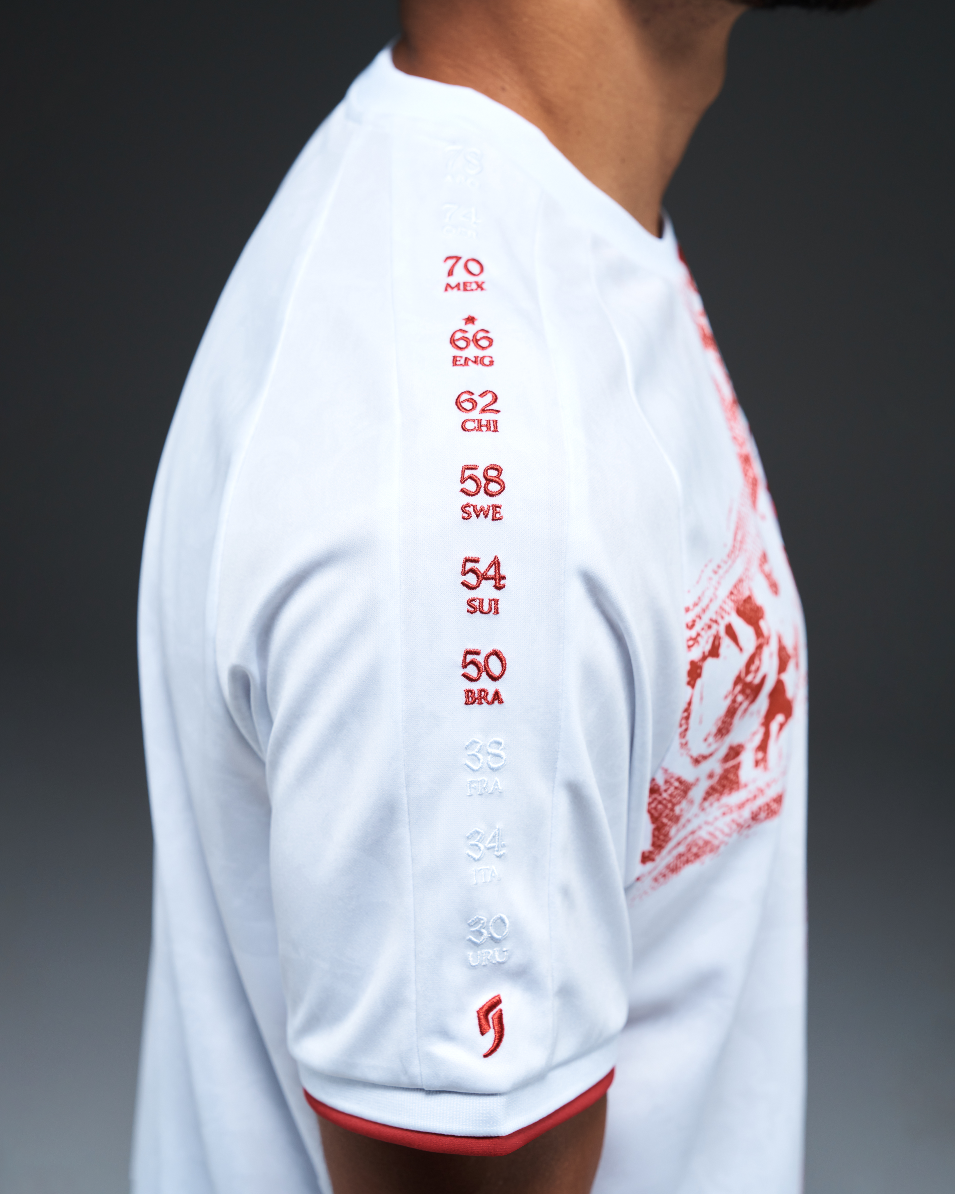 • Every World Cup they entered, embroidered along the sleeves - with a star for their win in 1966.