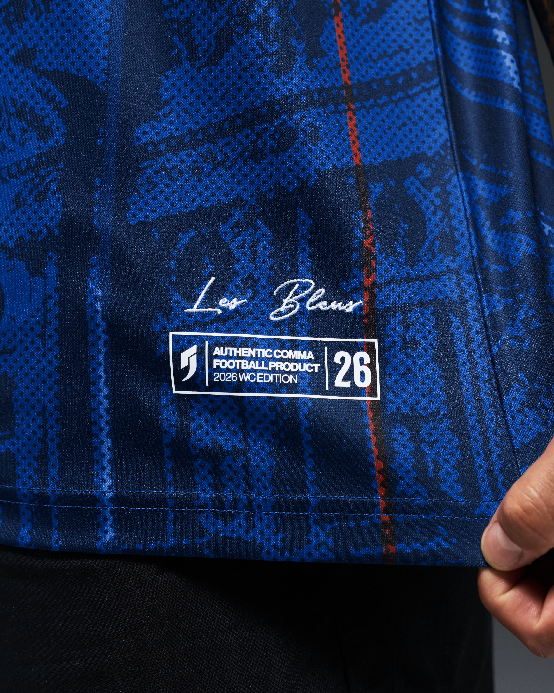 • Their nickname, "Les Bleus" (The Blues), embroidered in white.