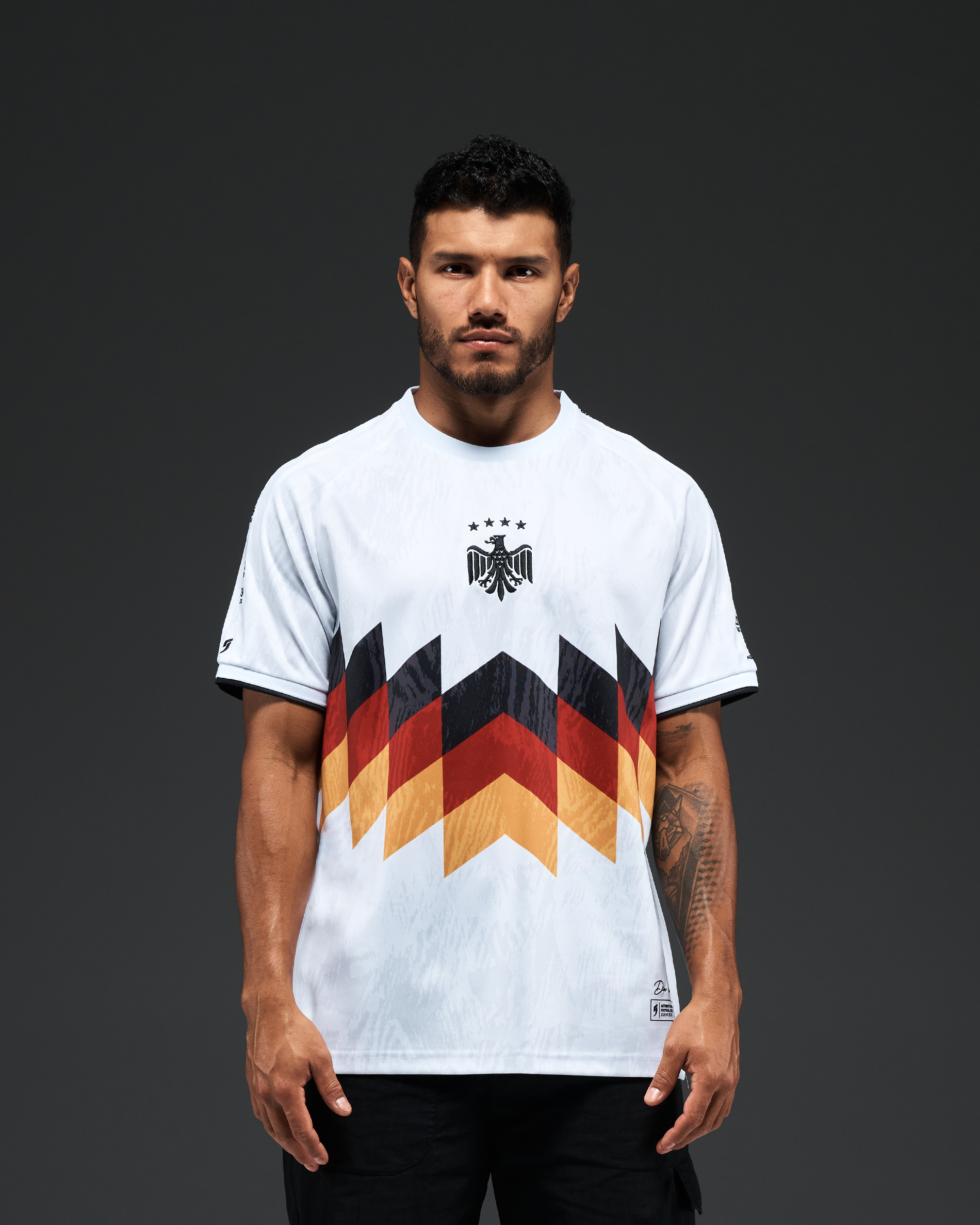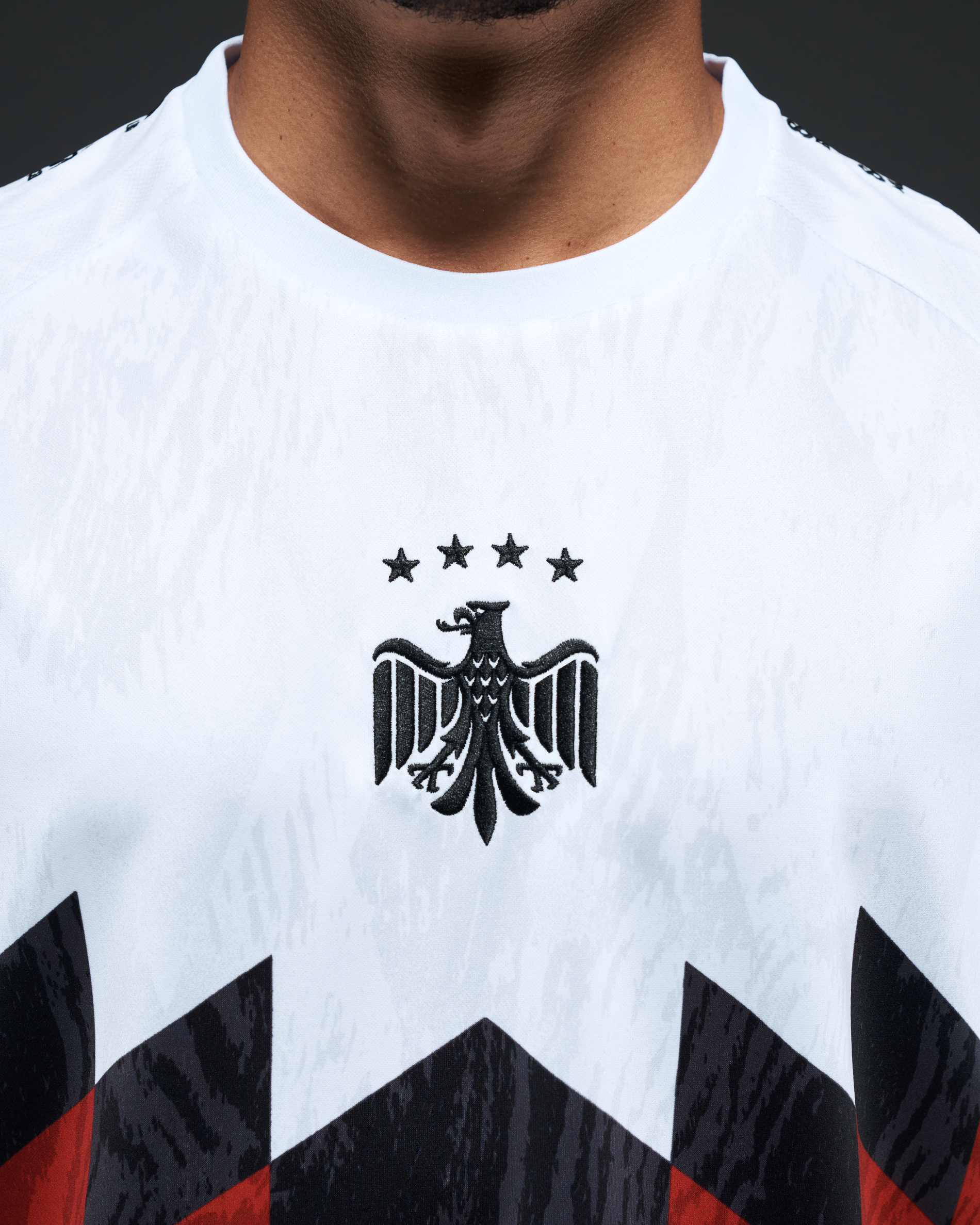 •  A pattern inspired by Eagles and the iconic German 1990 and 1994 kits.