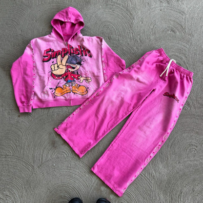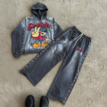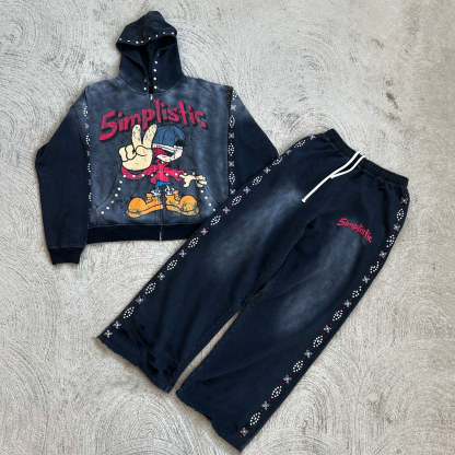 Hip Hop Street Zipper Hoodie Pants Two-Piece Set