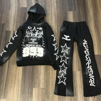 Lucky Star Casual Streetwear Hoodie Pants Two-Piece Set