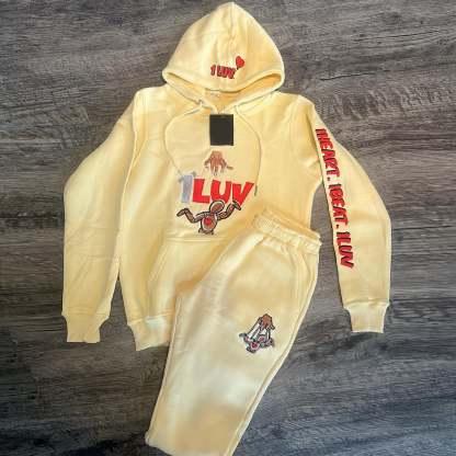 Stylish casual preppy graphic print hoodie set