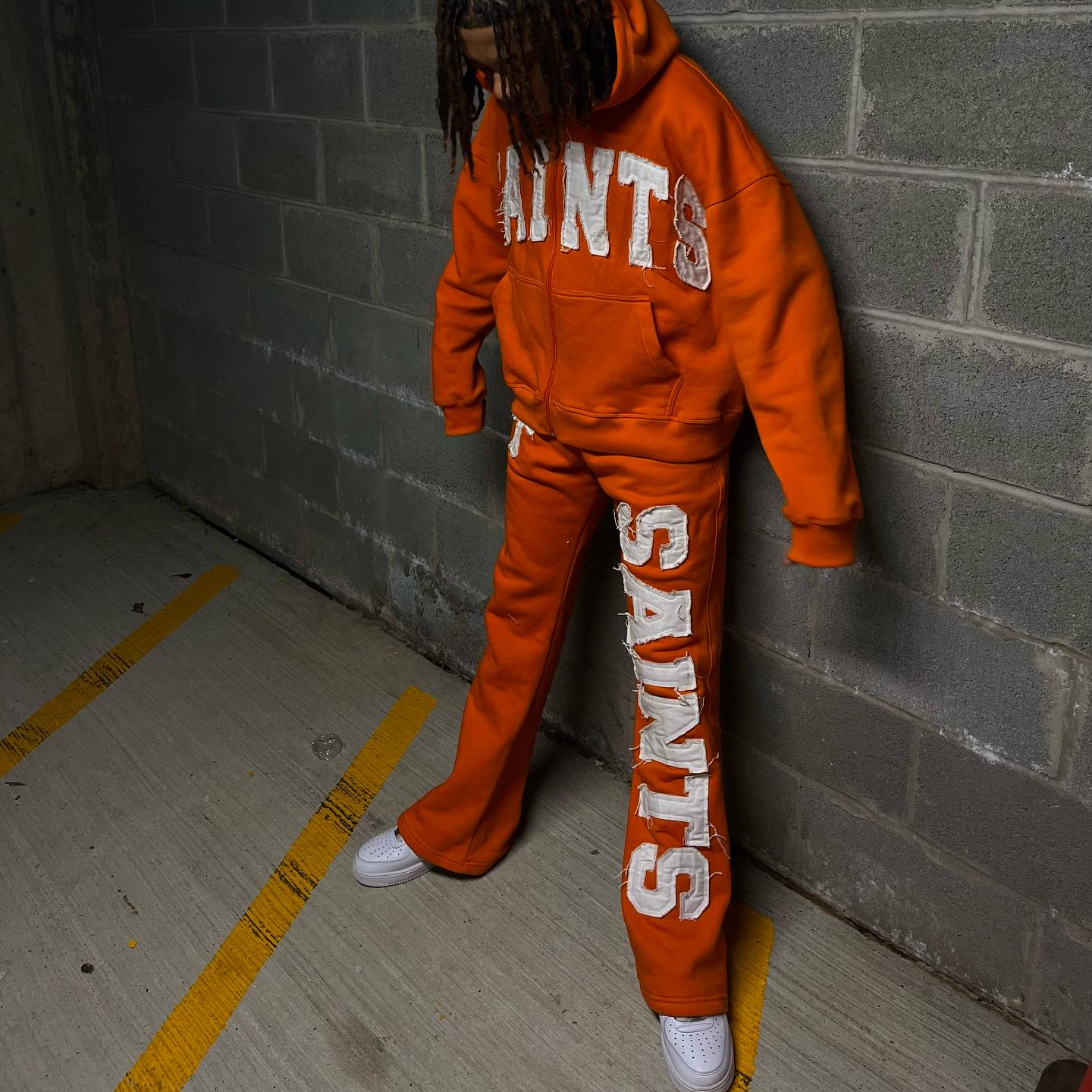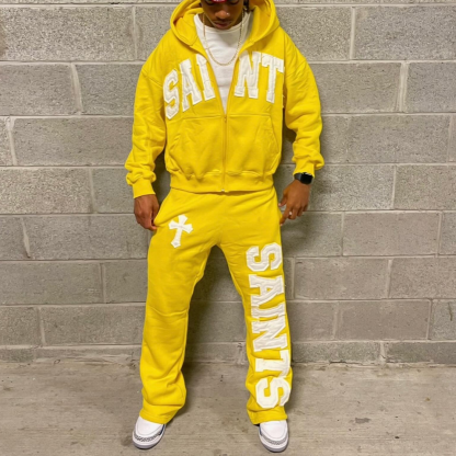 Vintage applique embroidered zip-up sweatshirt two-piece set