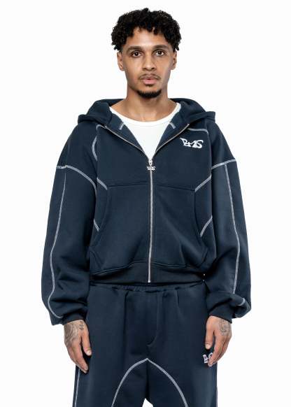 GREY LINE NAVY ZIP HOODIE