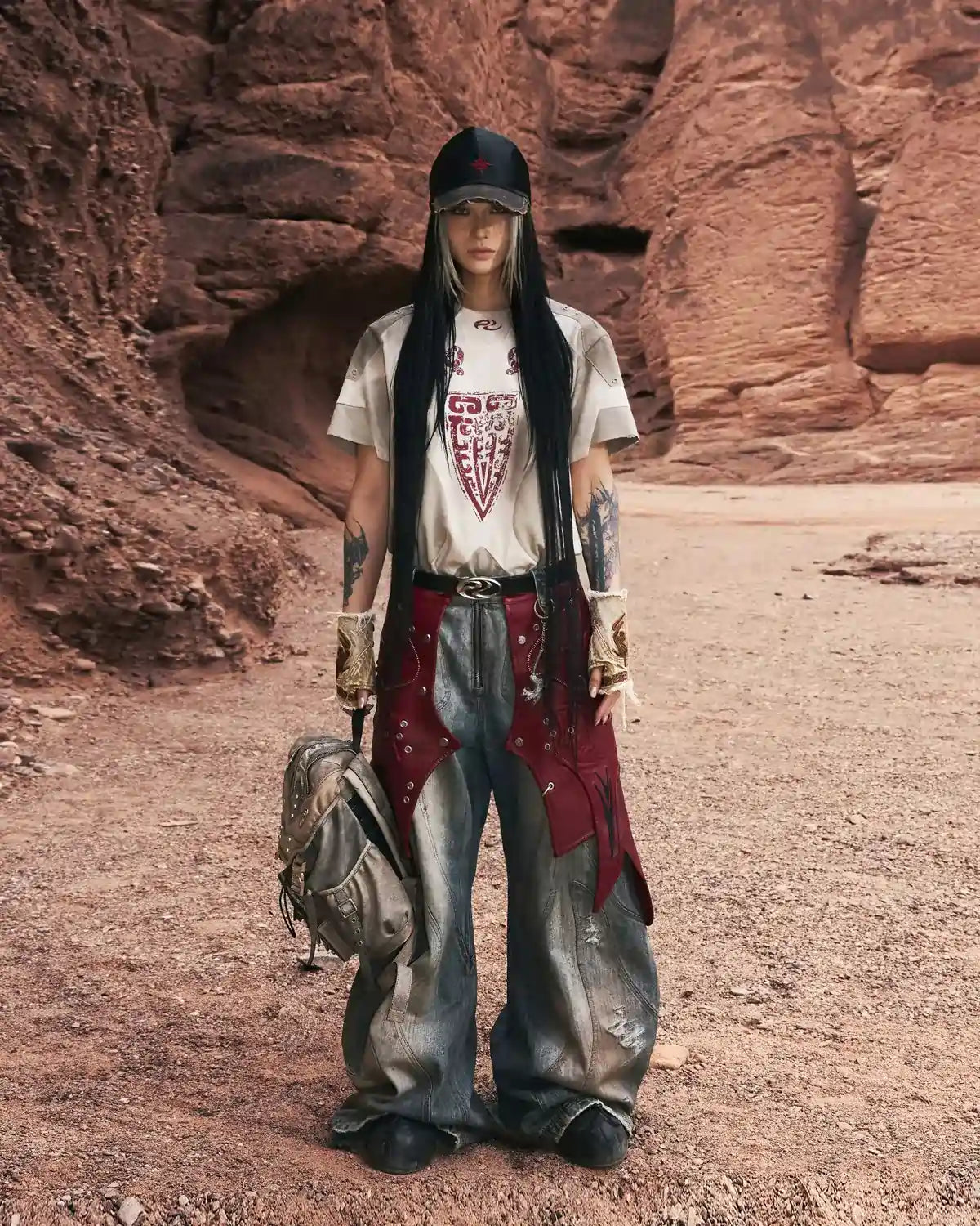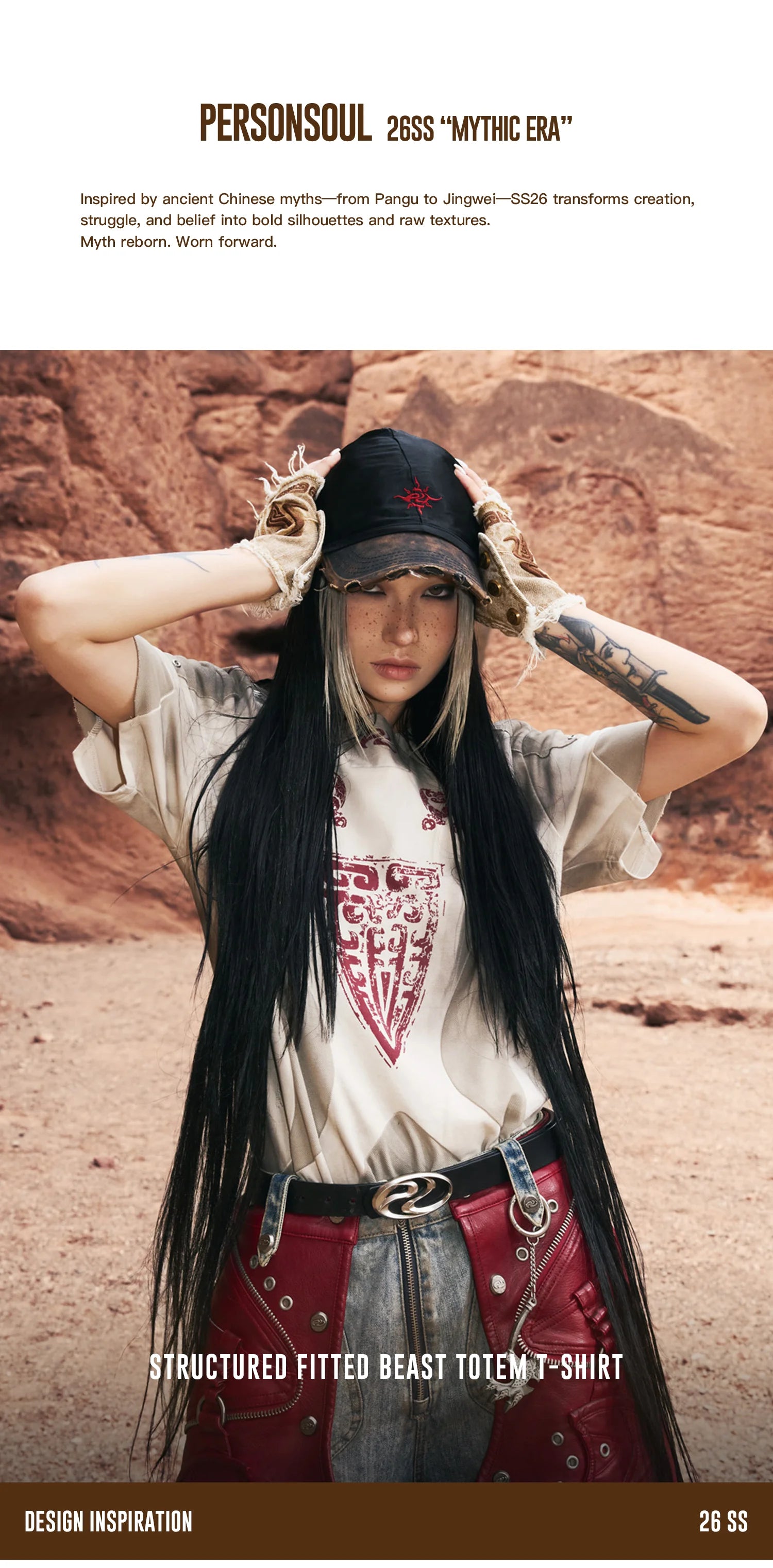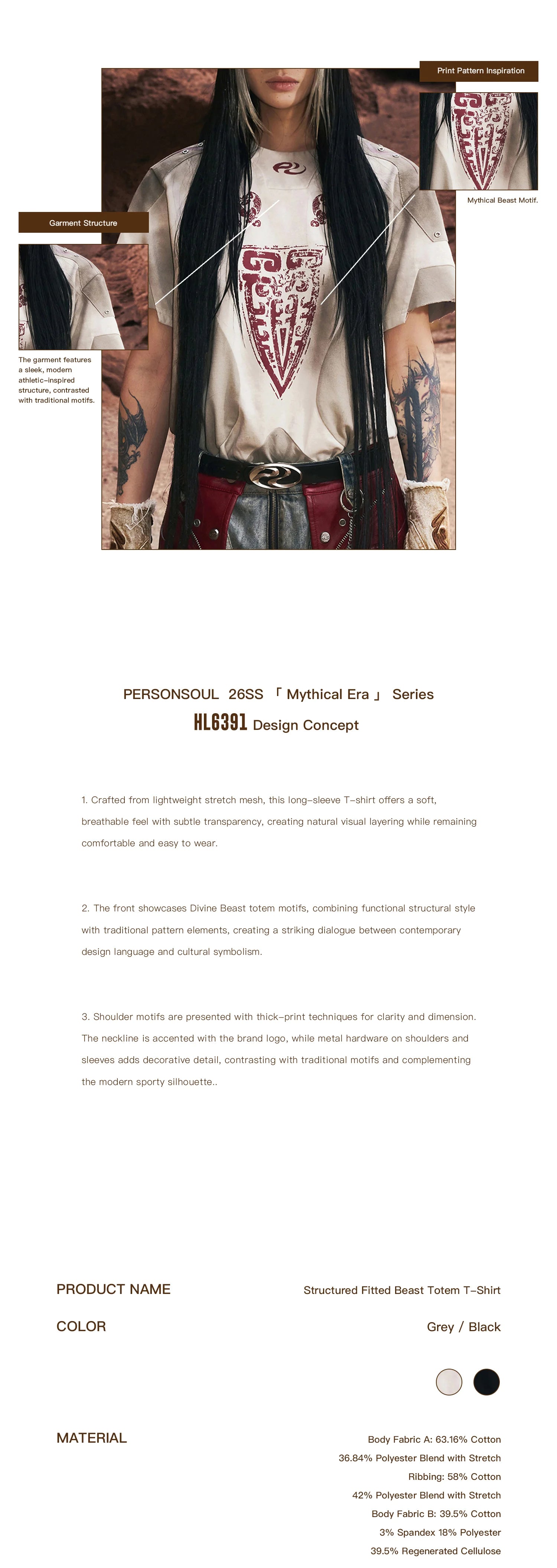 Personsoul Structured Fitted Beast Totem T-Shirt Gray