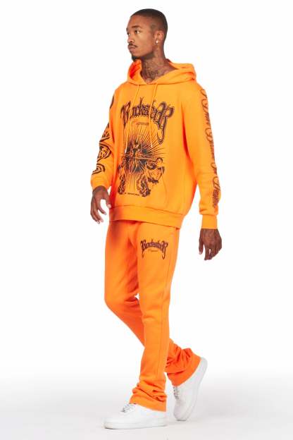 Yarden Orange Graphic Hoodie/Stacked Flare Pant Track Set