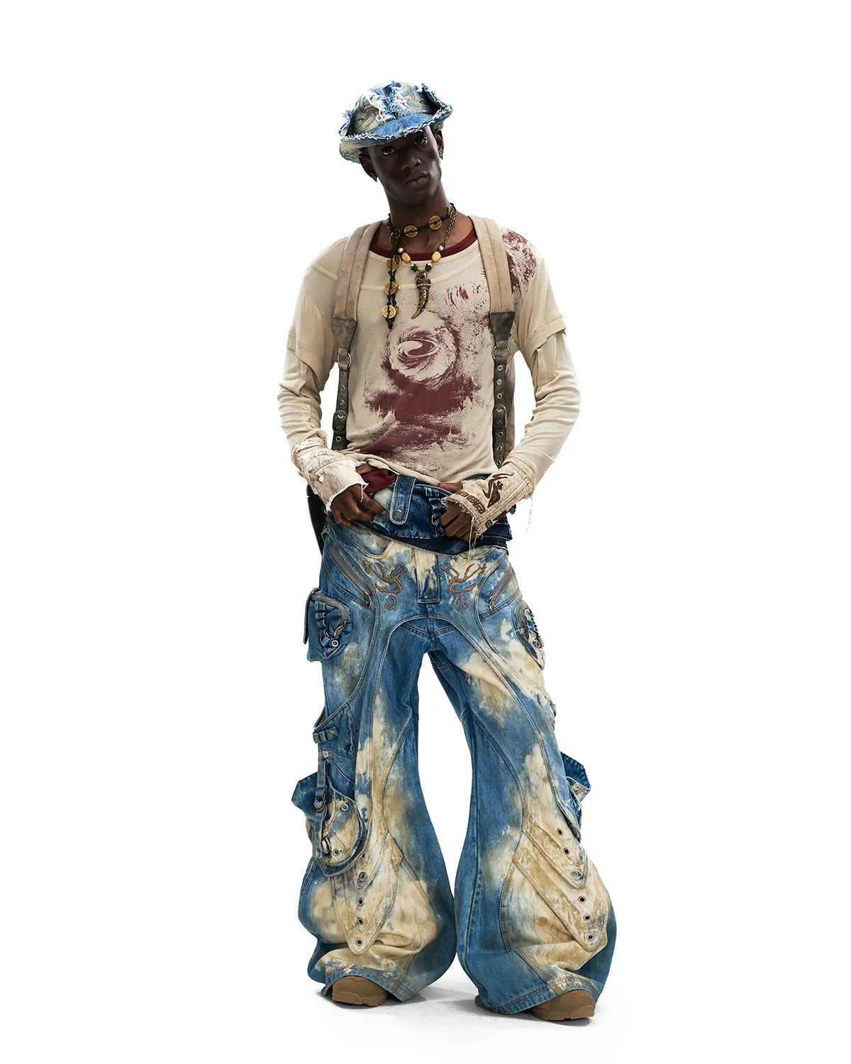 Orrienly™ Embroidered Blue-to-White Gradient Denim Jeans