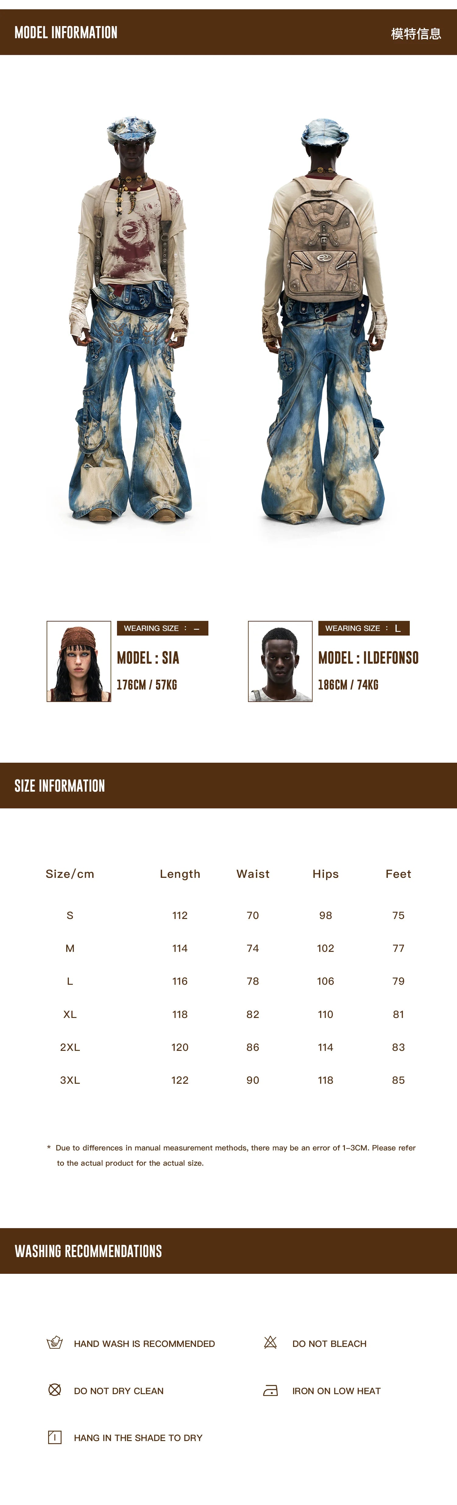 Product Info & Size Chart Details
