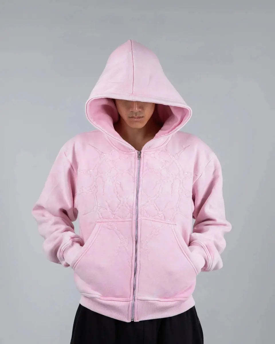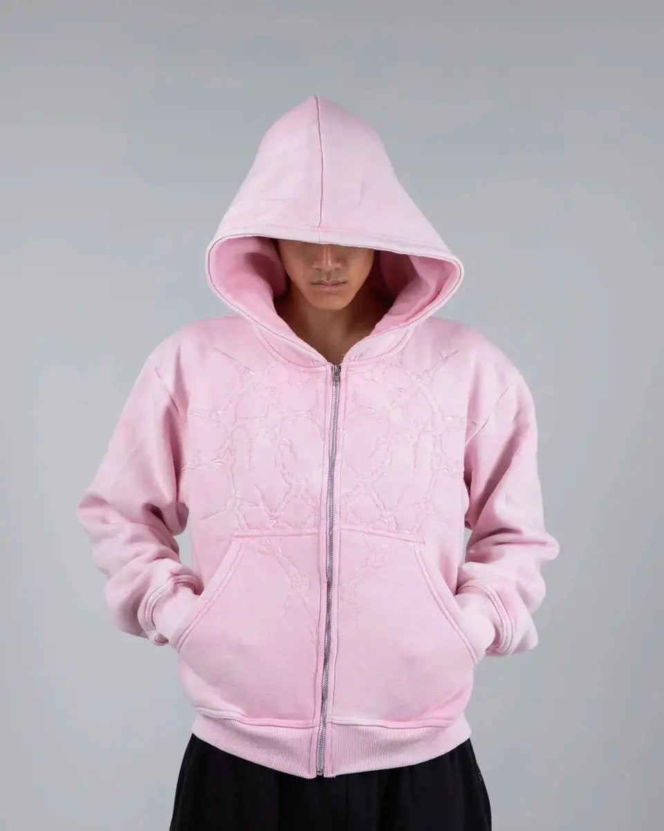 “Half a Million” Embroidery Zip-Up (Light Pink)