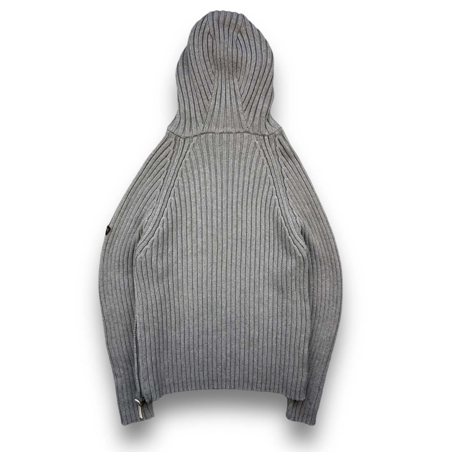 Grey colourway. Dual zip opening, left sided zip can open up fully. Heavyweight knit.