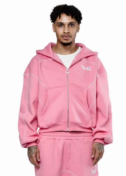 GREY LINE PINK ZIP HOODIE