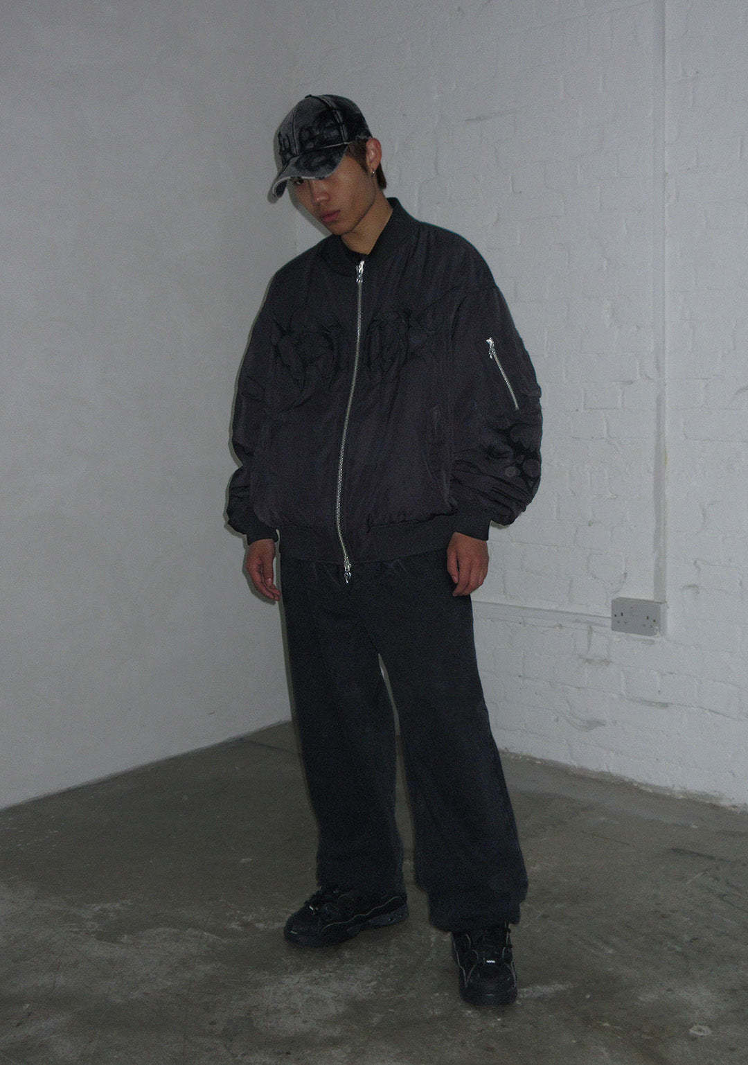 CRASH EMBROIDERED BOMBER JACKET BLACK