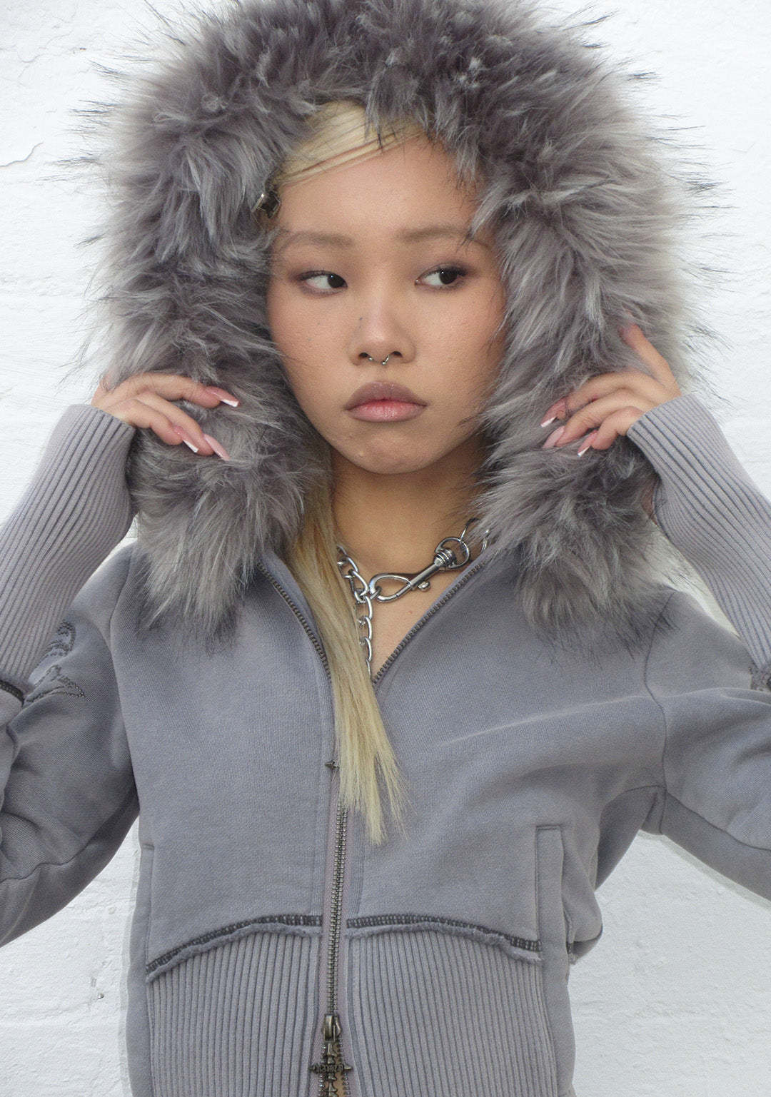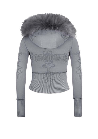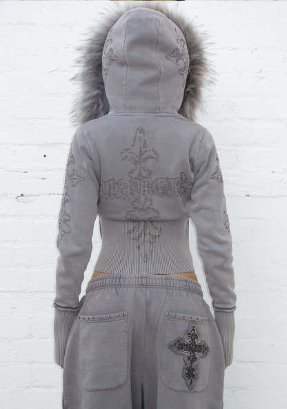 FERAL FAUX FUR FITTED ZIP HOODIE WASHED GREY (DETACHABLE FUR)