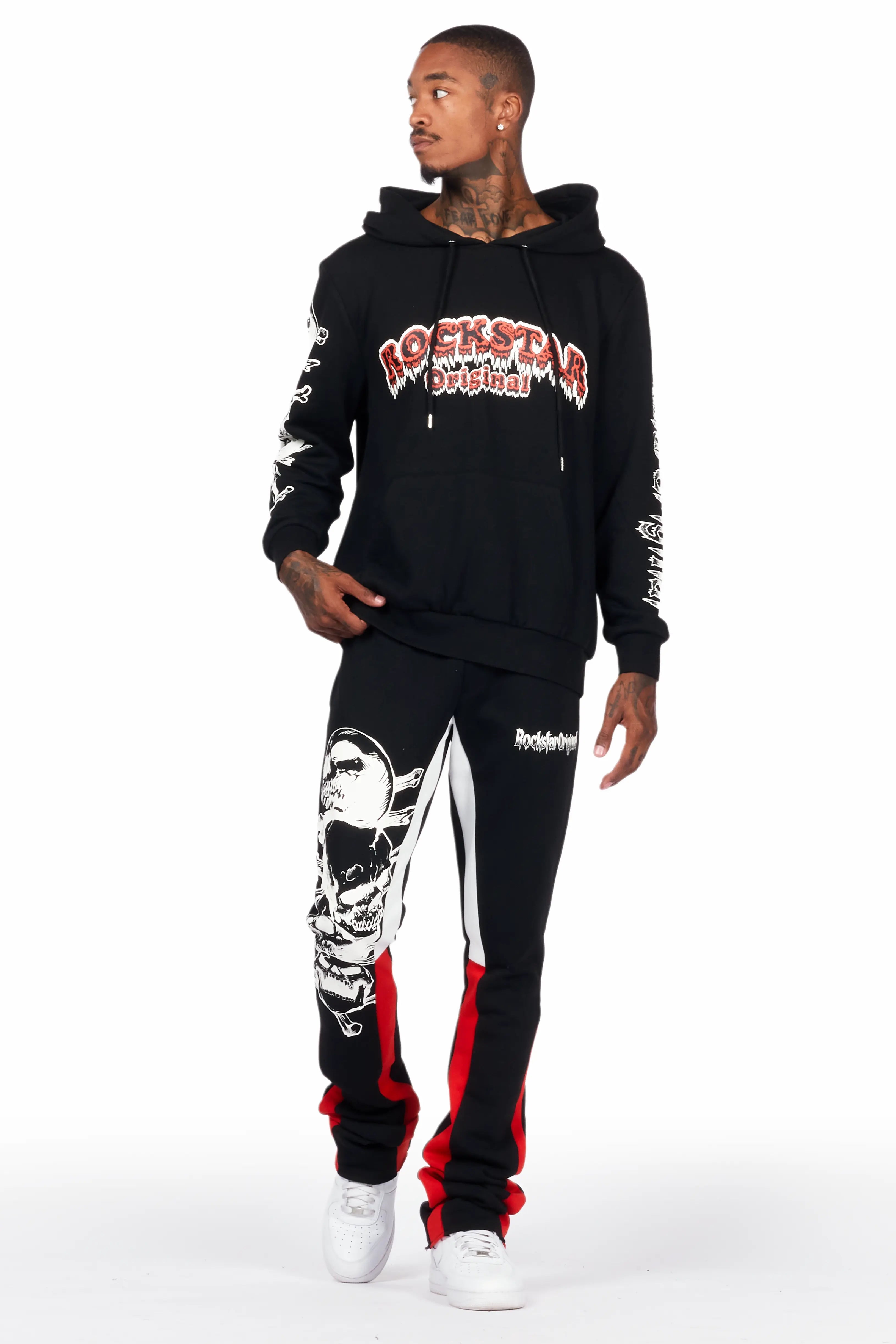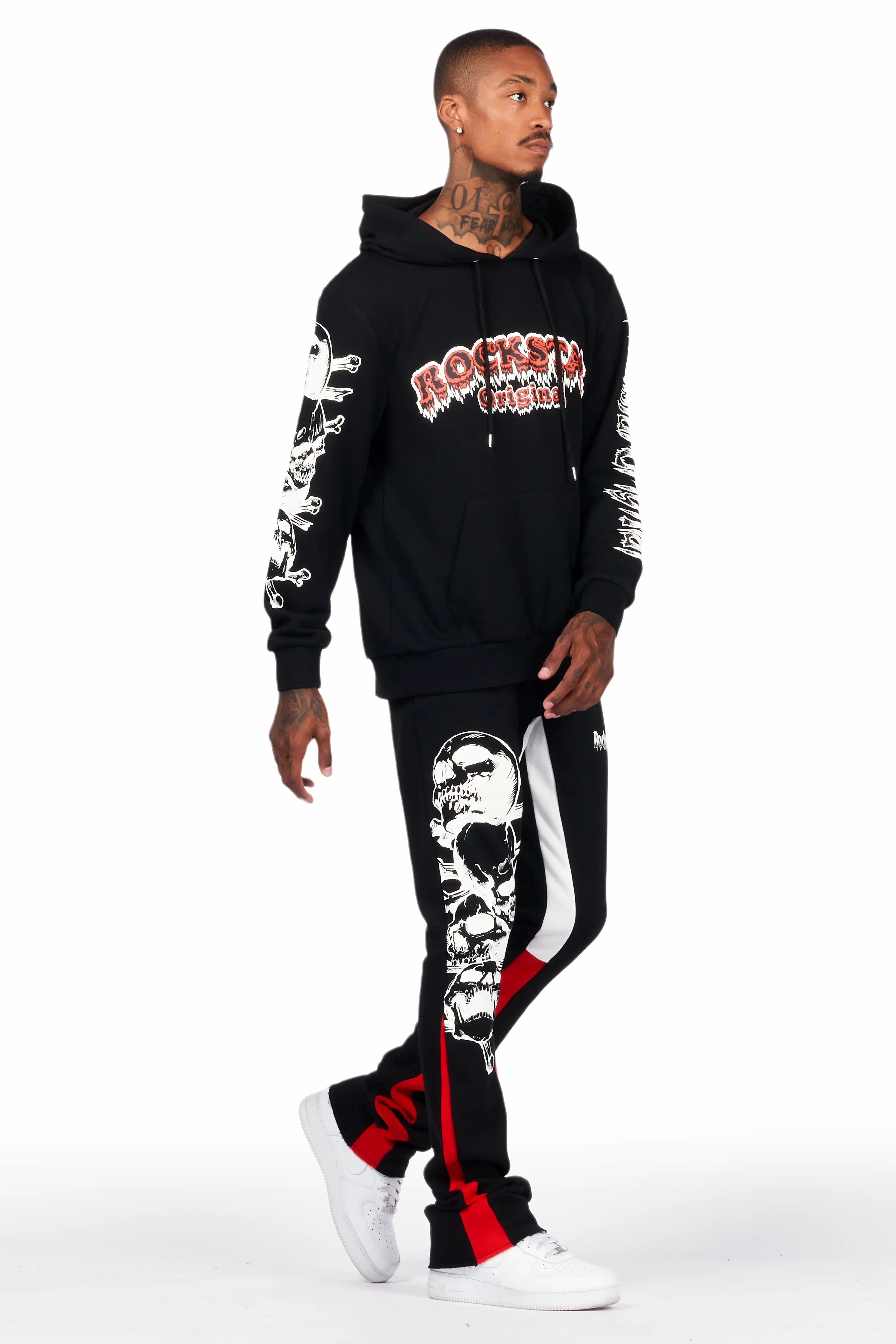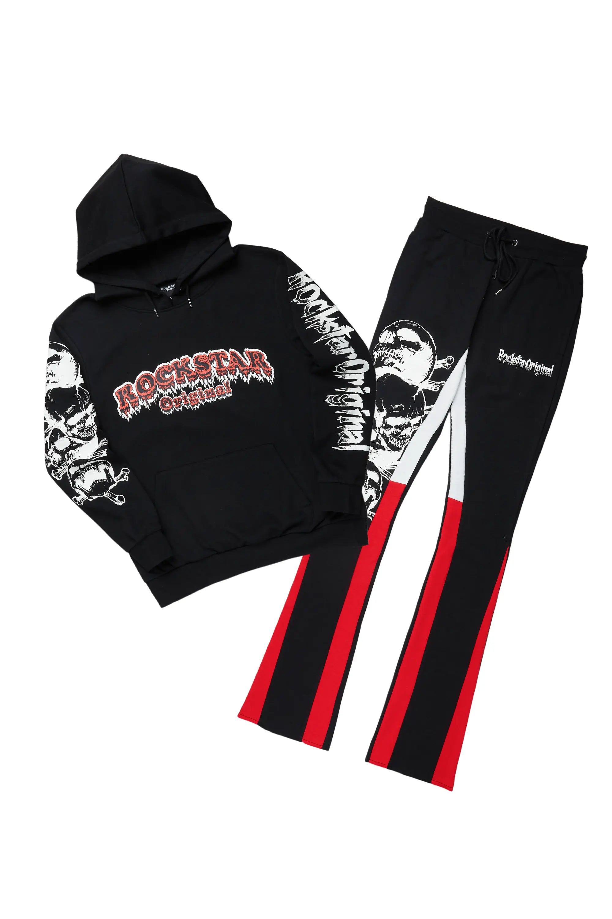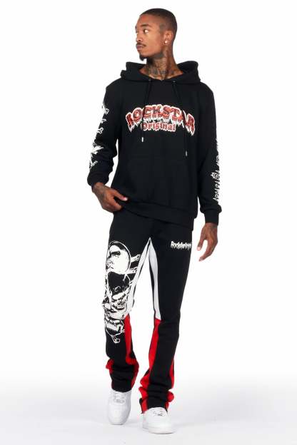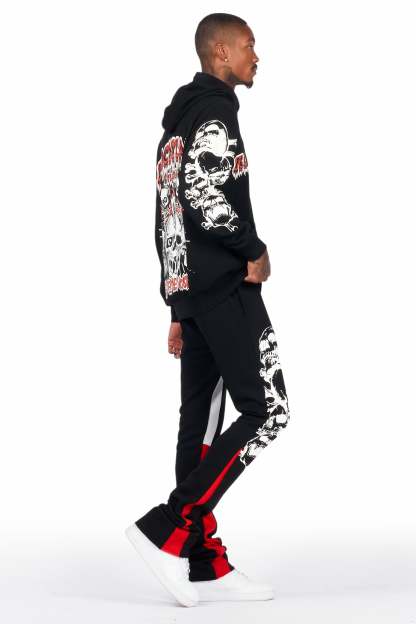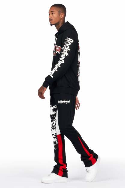 Tabor Black/Red Graphic Hoodie/Stacked Flare Pant Track Set