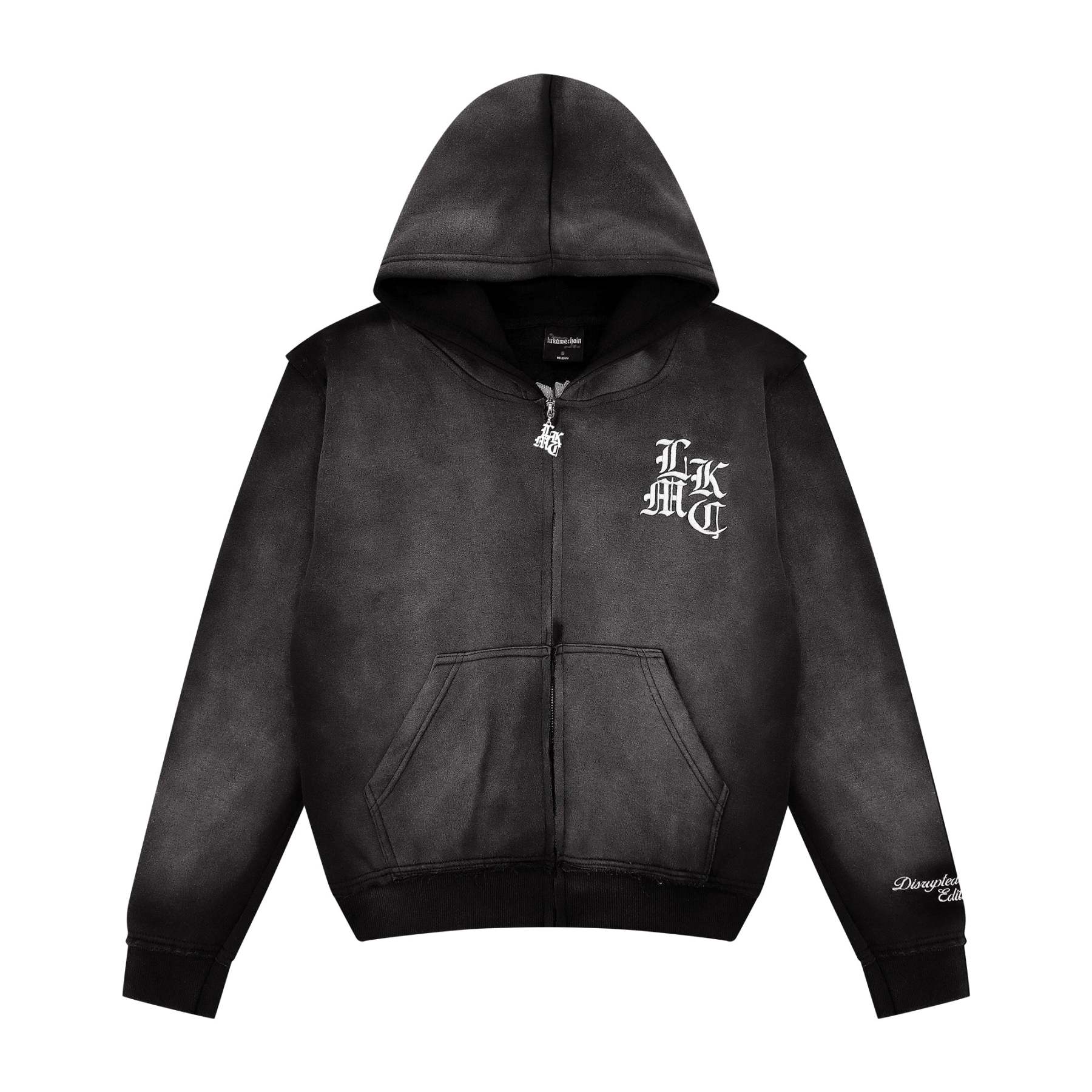 Distressed Zip Hoodie Dark Gray
