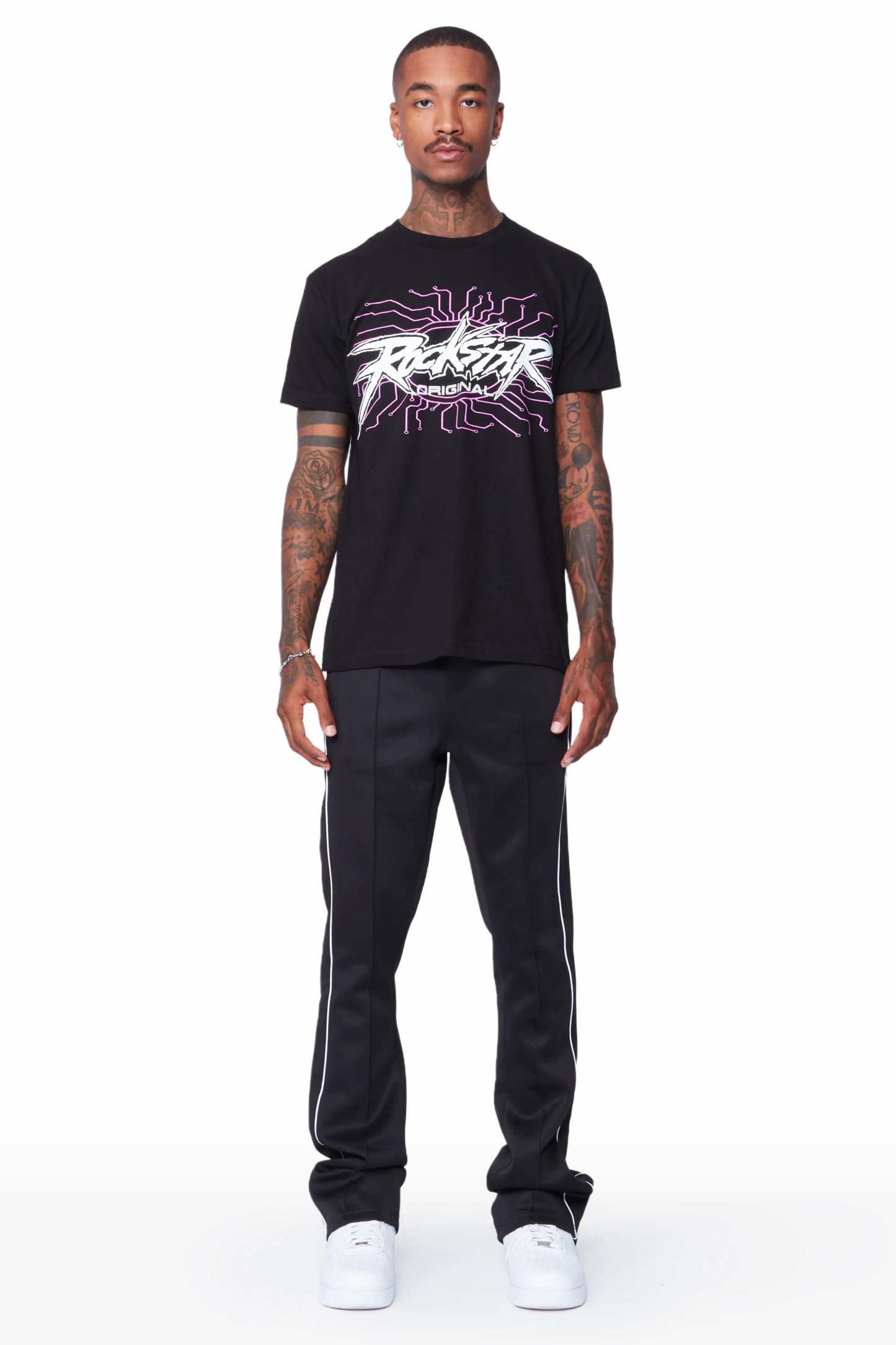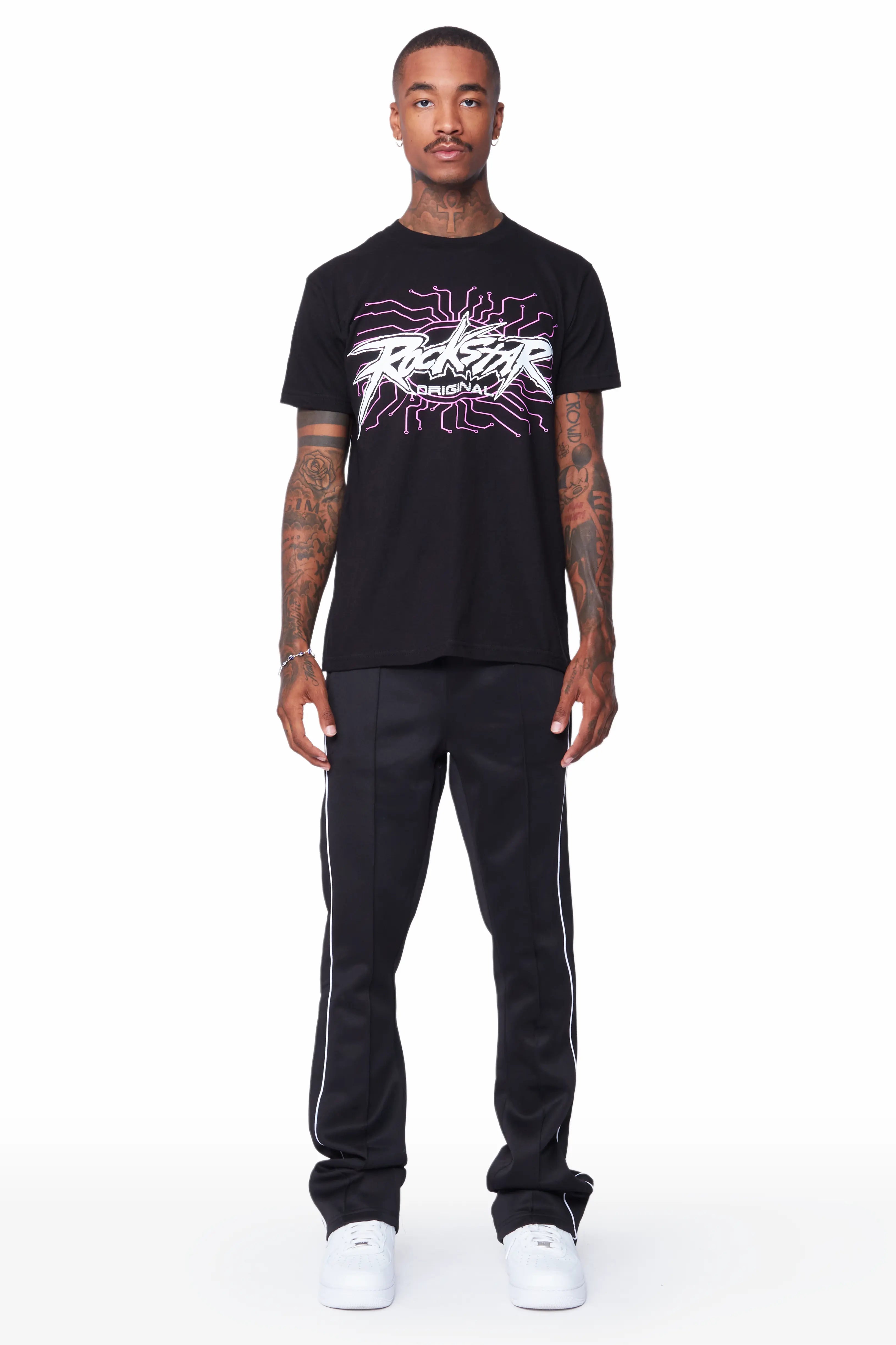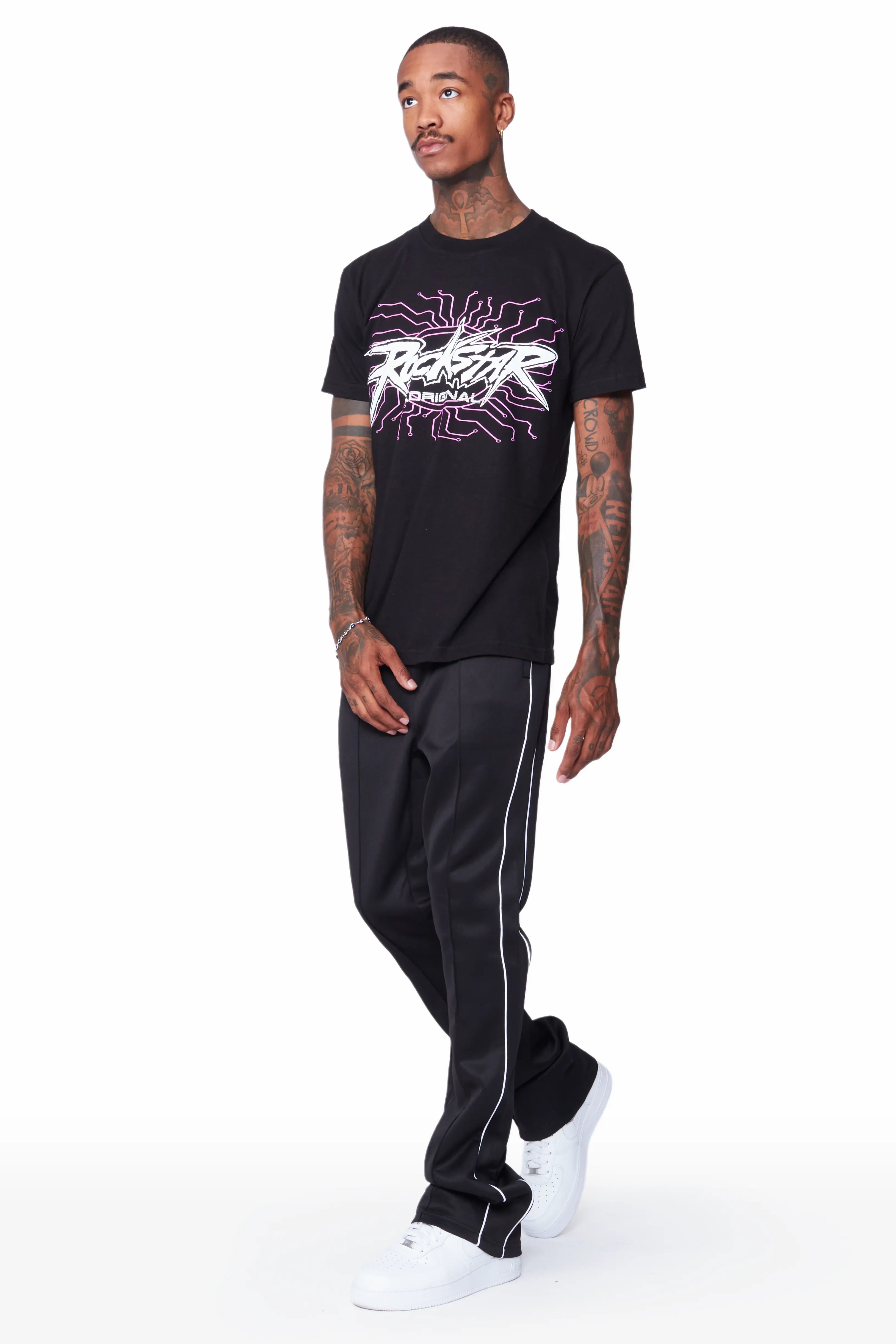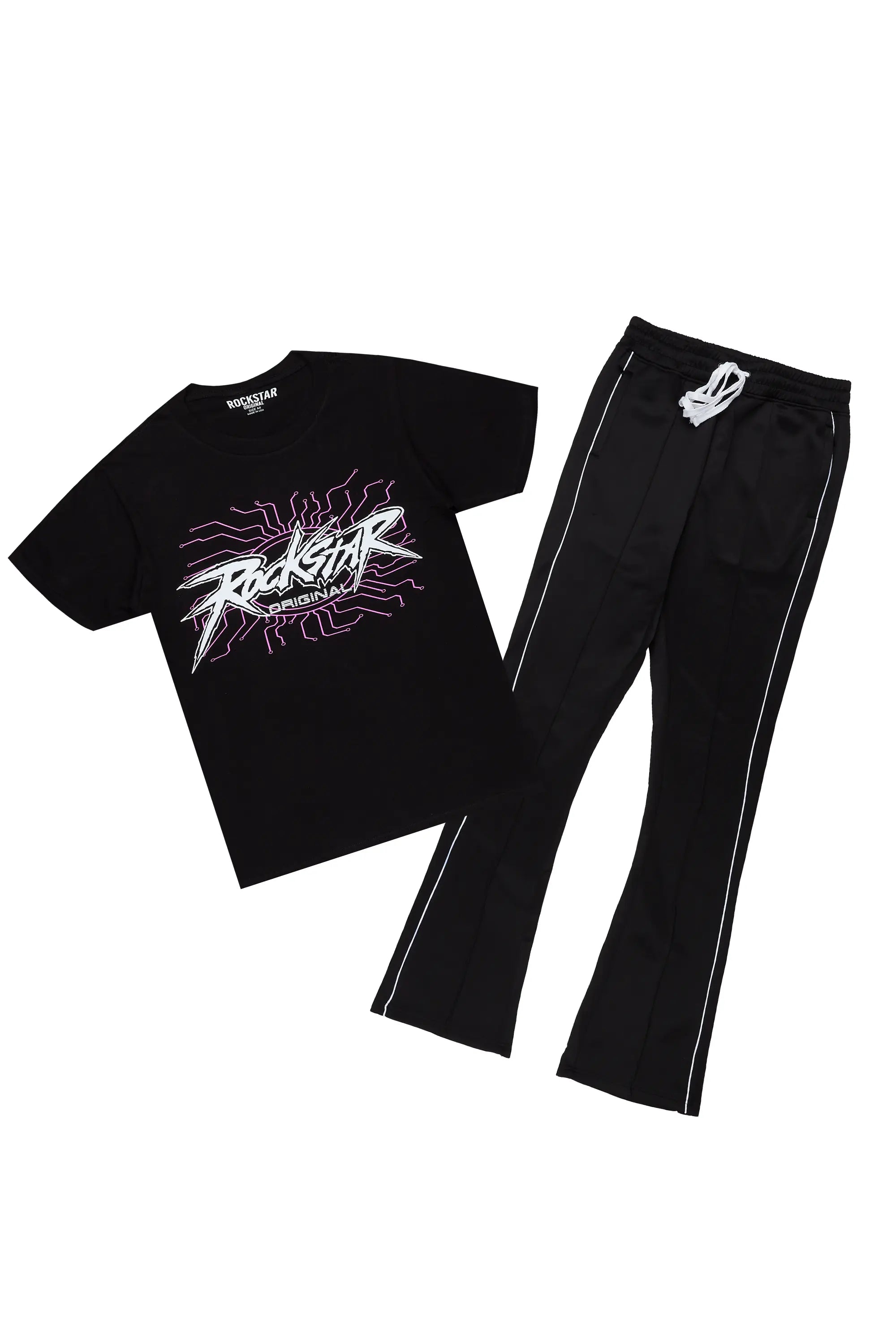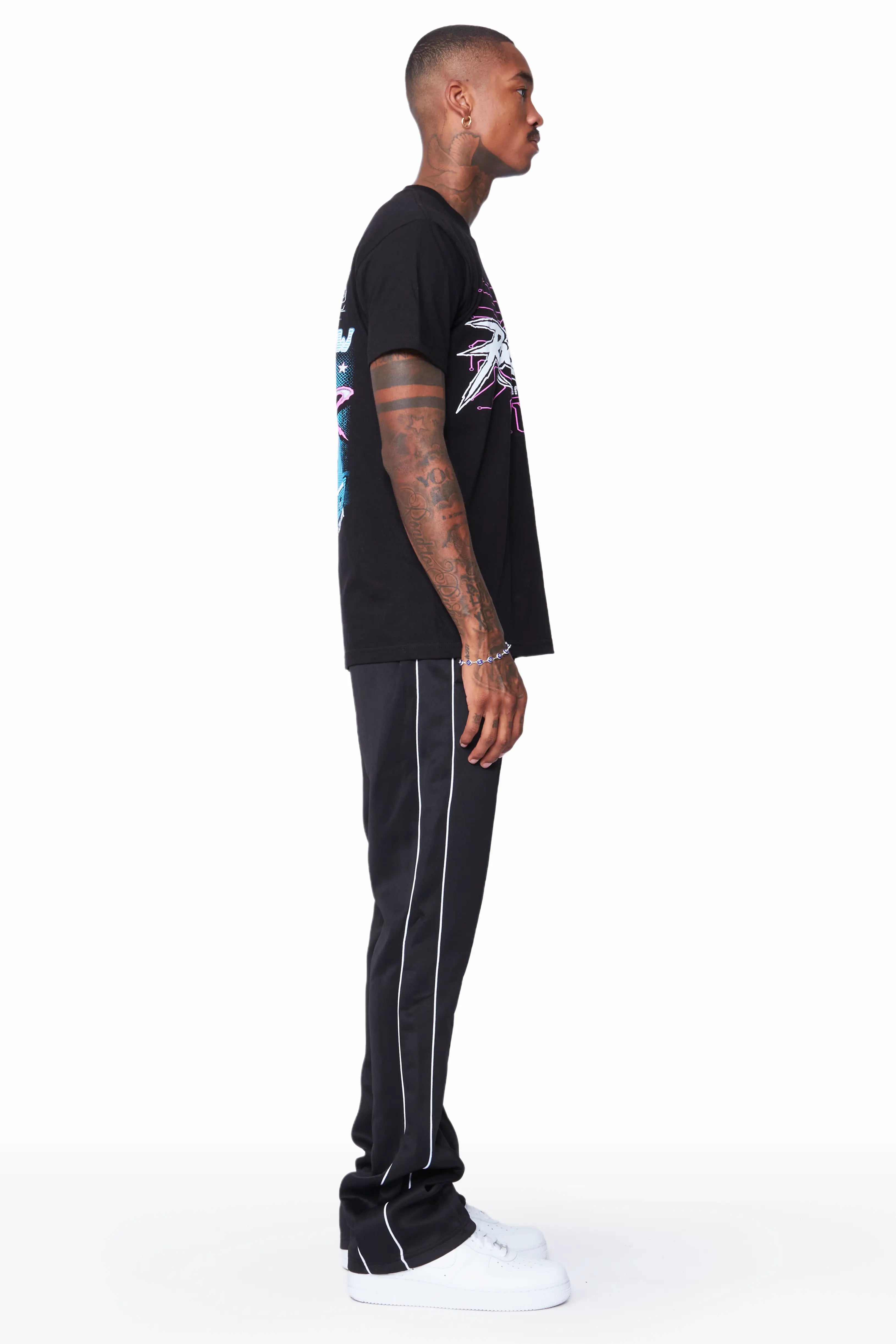 Race Black T-Shirt Stacked Flare Track Set