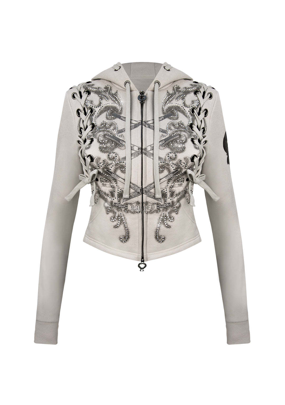 VENDETTA LACE UP FITTED ZIP HOODIE BONE