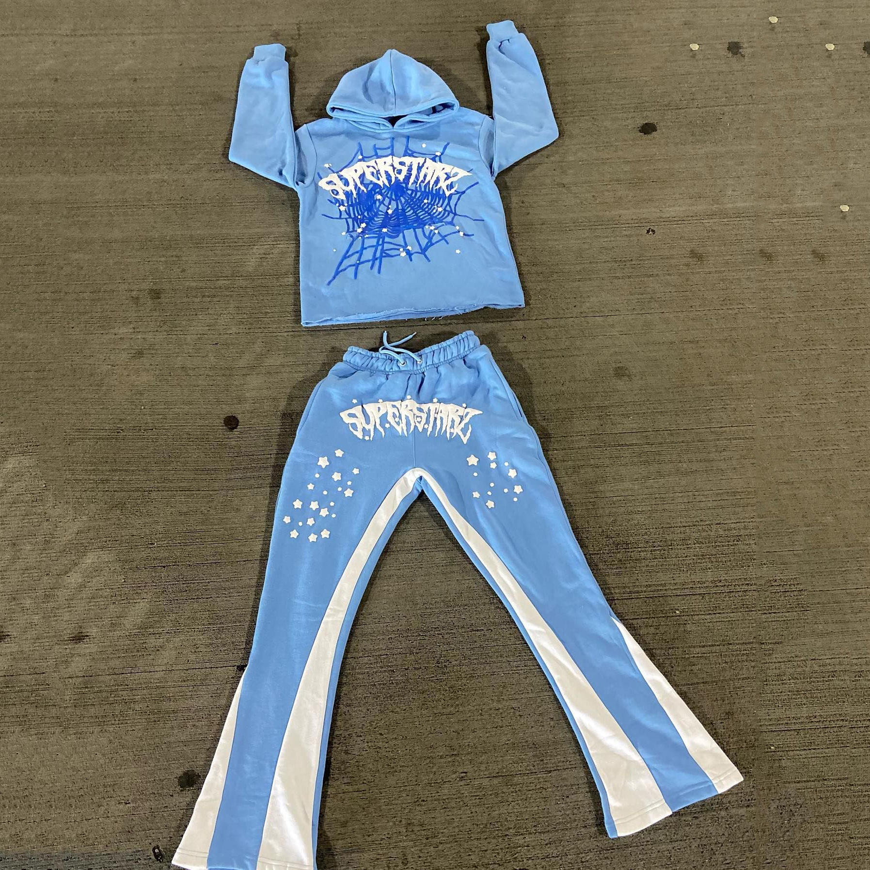 Alphabet Spider Web Print Hoodie Sweatpants Two Piece Set