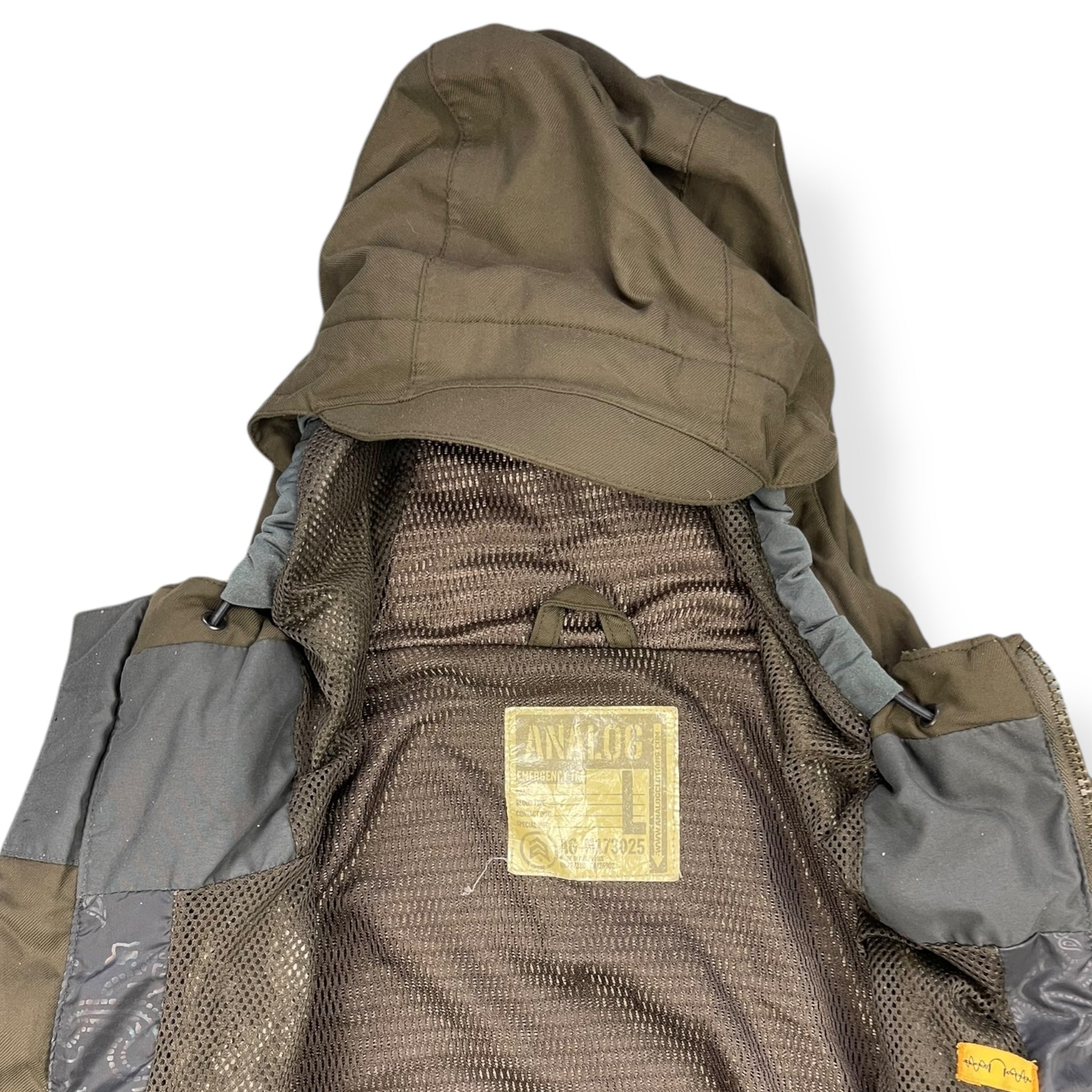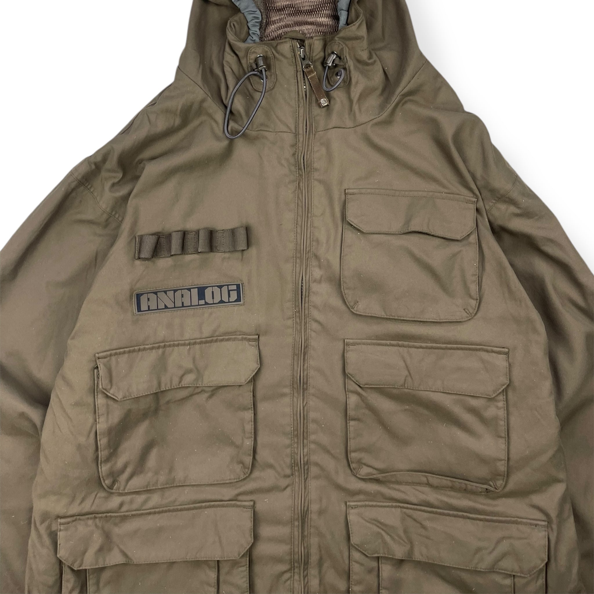 Brown/Khaki colourway. 9 total pockets on the front of the jacket, elasticated hood & waist hem, stash interior pocket, snow skirt & peaked hood.
