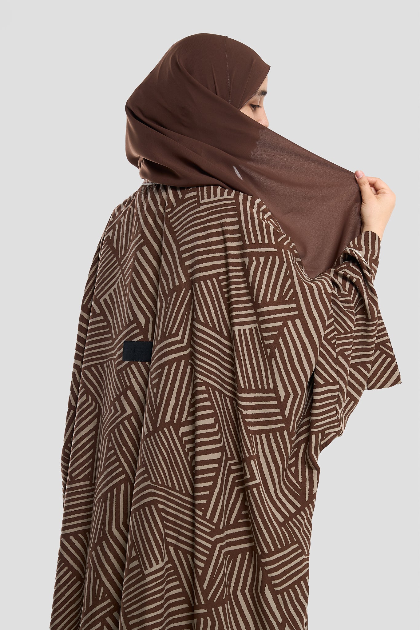 Geometric Pattern Abaya – Premium Modest Wear Elevate your style with this black geometric pattern abaya, designed for women who appreciate modern elegance. Crafted from high-quality, breathable fabric, this abaya features a bold maze-inspired print in neutral tones, wide sleeves, and a loose, flowy fit for all-day comfort. Perfect as a stylish abaya for casual outings or special occasions, it pairs beautifully with neutral or contrasting hijabs for a complete look.