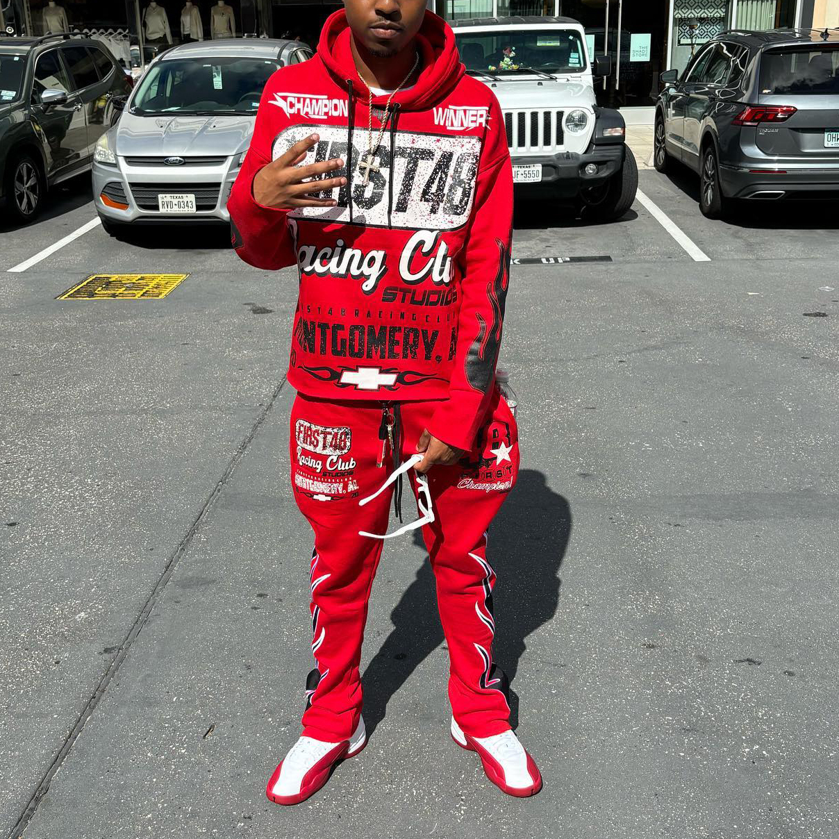 Personalized retro racing pattern hoodie set